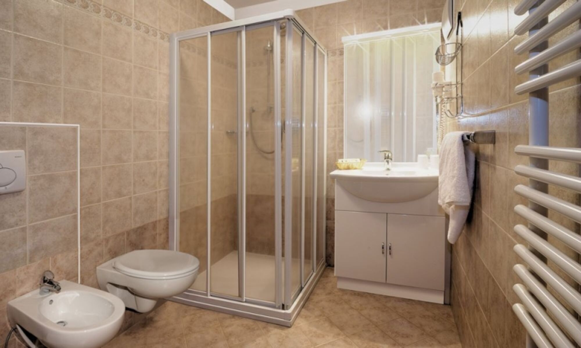 Badezimmer mit Dusche, Bidet und WC