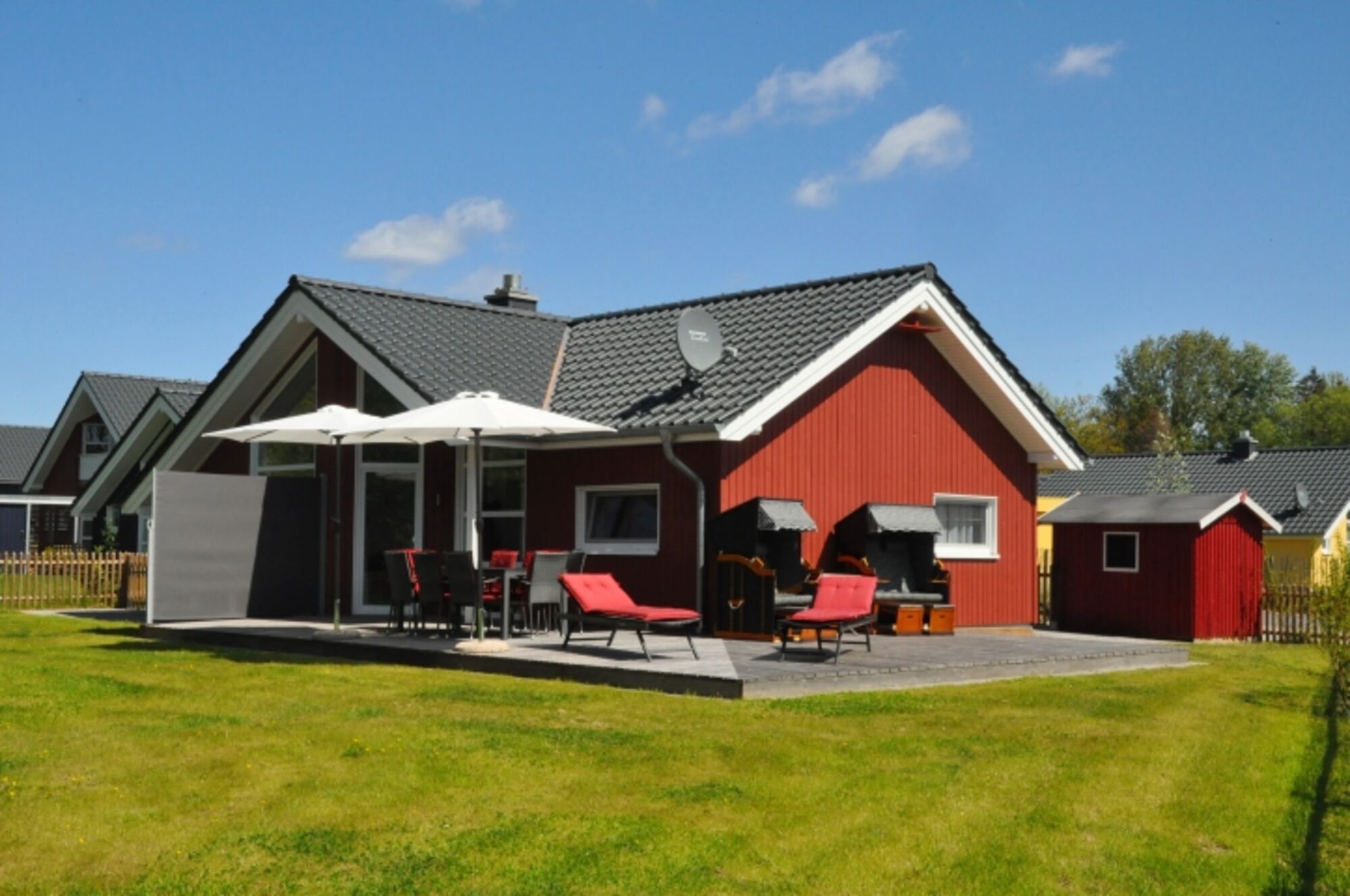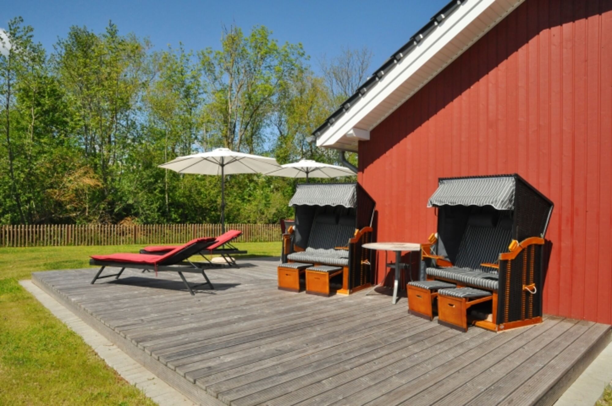Ostsee Ferienhaus Tüterbüdel mit WLAN, Strandkorb am Haus