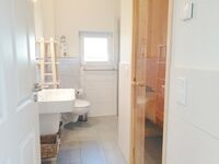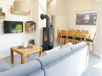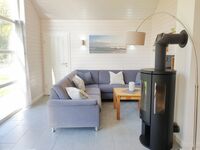 Zusatzaustattung: Waschmaschine, Trockner, Bügeleisen, Bügelbrett, WLAN, 4 Flachbildschirm-Fernseher, DVD-Player, Sauna, SAT-TV, Ministereoanlage (Radio/CD), Bücher, Spiele, Fußbodenheizung, Hochstuhl, Kinderreisebett mit separater Matratze, Kaminofen, Saison-Strandkorb auf dem Deich (Mai-Sept.)