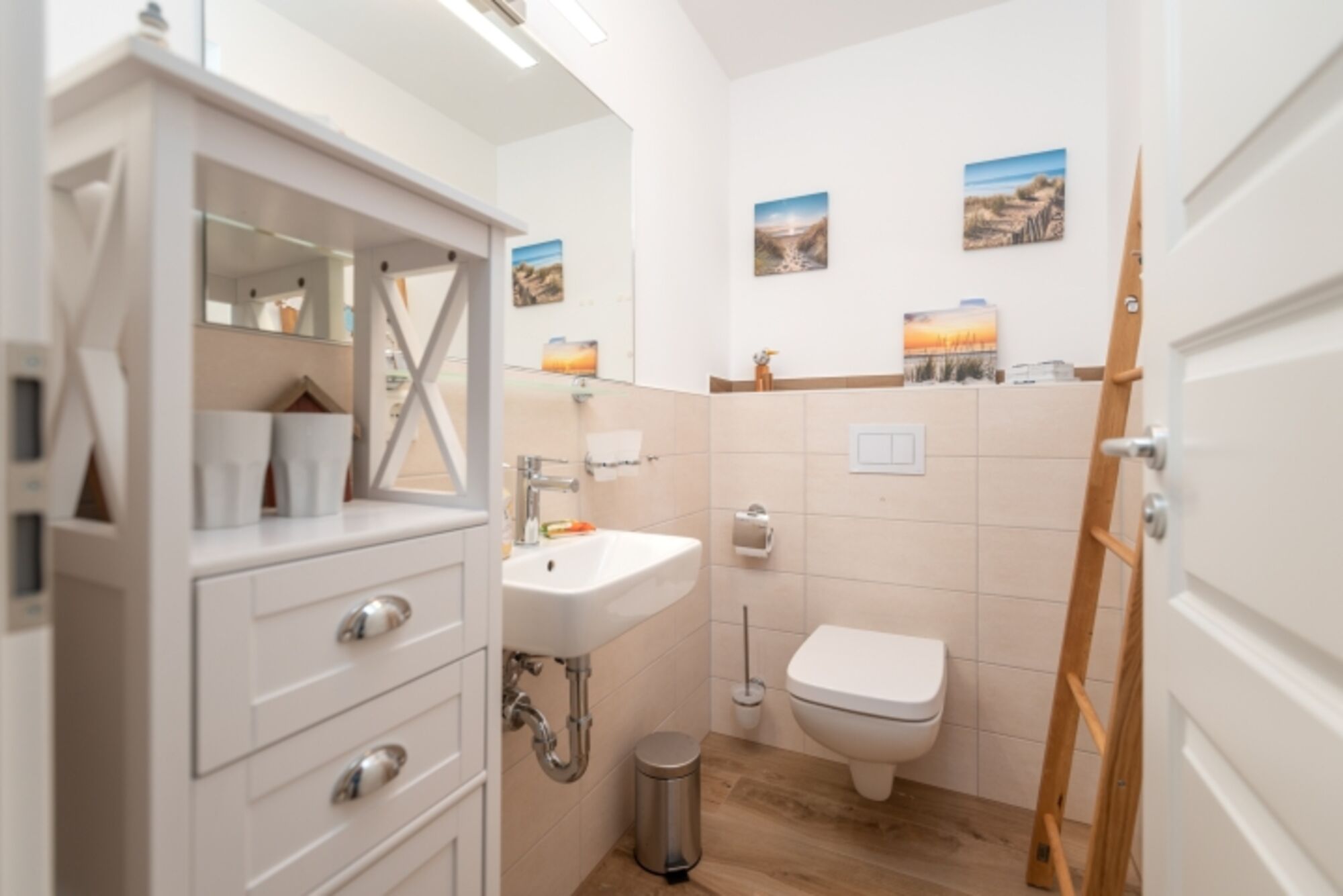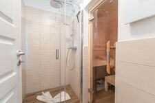 Im Erdgeschoss gibt es noch ein zweites Badezimmer mit Dusche & Sauna. Dazu gibt es ein zusätzliches Gäste-WC.