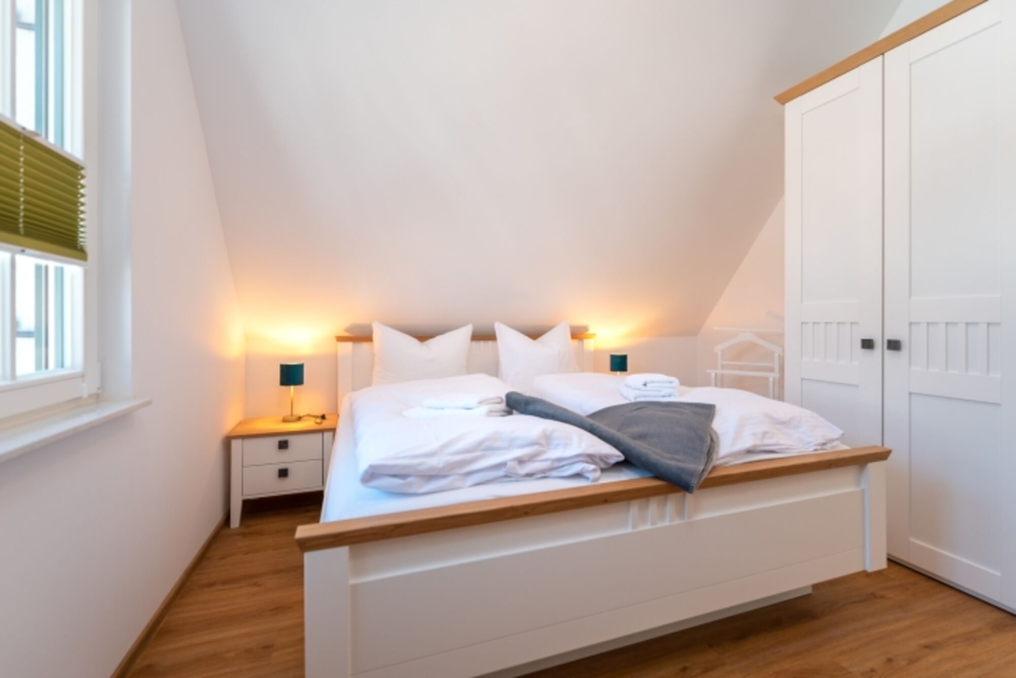 Das charmante, reetgedeckte Ferienhaus versprüht den beliebten Usedomer Inselflair. Auf ca. liebevoll eingerichteten Quadratmetern finden 6 Personen + Kleinkind bequem Platz. In der oberen Etage bietet ein Schlafzimmer mit Doppelbett und geräumigem Kleiderschrank Platz zum Träumen und genug Stauraum für die Urlaubsgarderobe. Das zweite Schlafzimmer verfügt zusätzlich zum Doppelbett noch über ein Babybett. Beide Schlafzimmer haben einen Smart-TV.