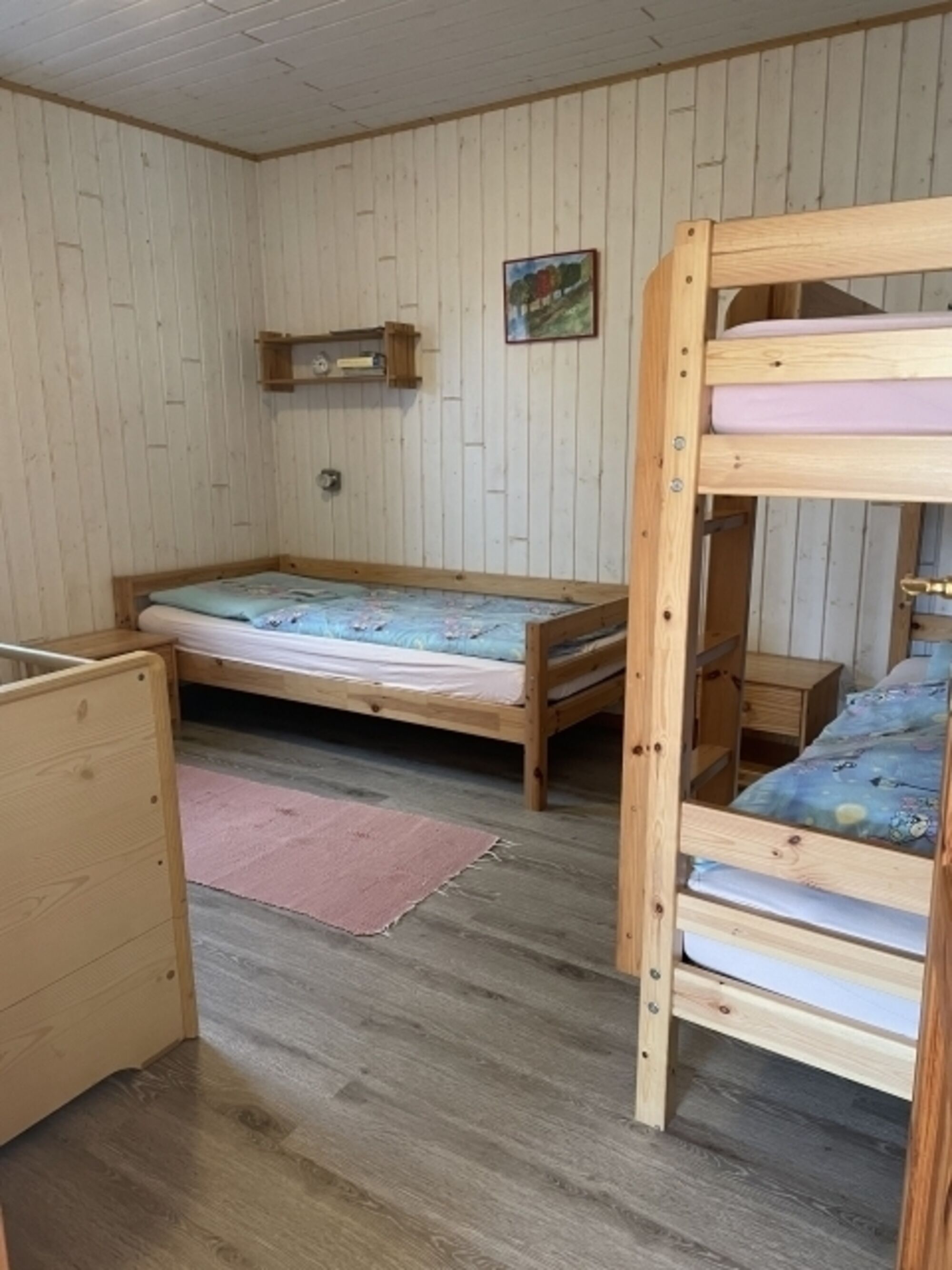 Mit Platz für bis zu 6 Personen ist unser Ferienhaus bestens für einen Urlaub mit der ganzen Familie geeignet. Auf ca. 70 m² bietet es Ihnen neben dem kombinierten Wohn-Essbereich, ein Badezimmer mit Dusche sowie ein Schlafzimmer mit Doppelbett und Kinderbett und ein Kinderzimmer mit einem Hochbett und einem Einzelbett. Die ländliche Einrichtung vermittelt Gemütlichkeit und der Kaminofen sorgt auch im Winter für wohlige Wärme. Im Service enthalten sind zudem Handtücher, Bettwäsche und ein Hygienestarterpaket. Dieses Haus bietet einen wunderschönen Blick auf unsere Sommerweide.