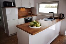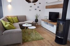 Zusatzausstattung: Waschmaschine, Bügelbrett, Bügeleisen, Kinderreisebett mit separater Matratze, Hochstuhl, Bücher, 3 Flachbildschirm-Fernseher, Sky-TV, Mini-Stereoanlage (CD/Radio), DVD-Player, WLAN, Fußbodenheizung, Kaminofen