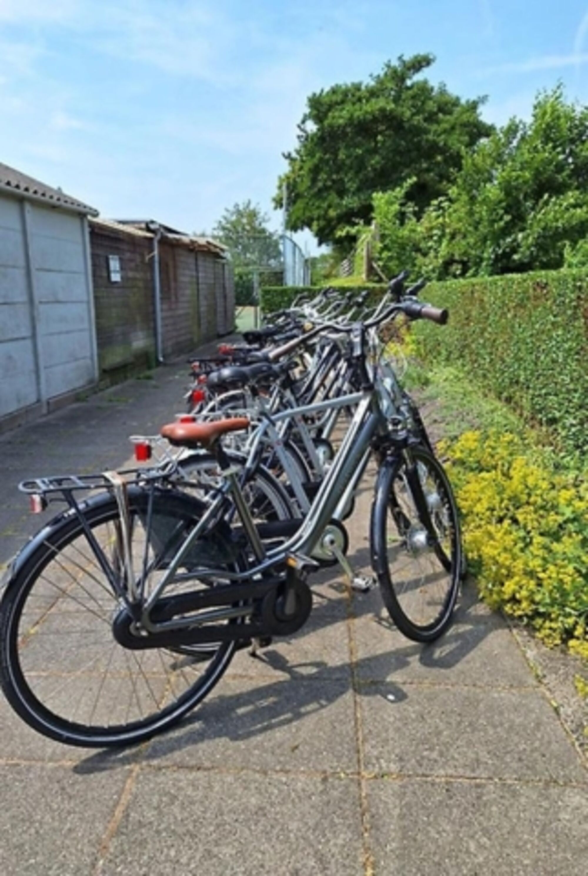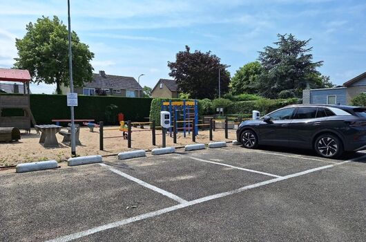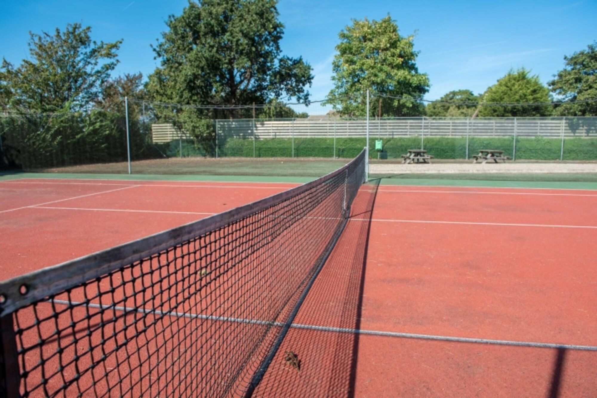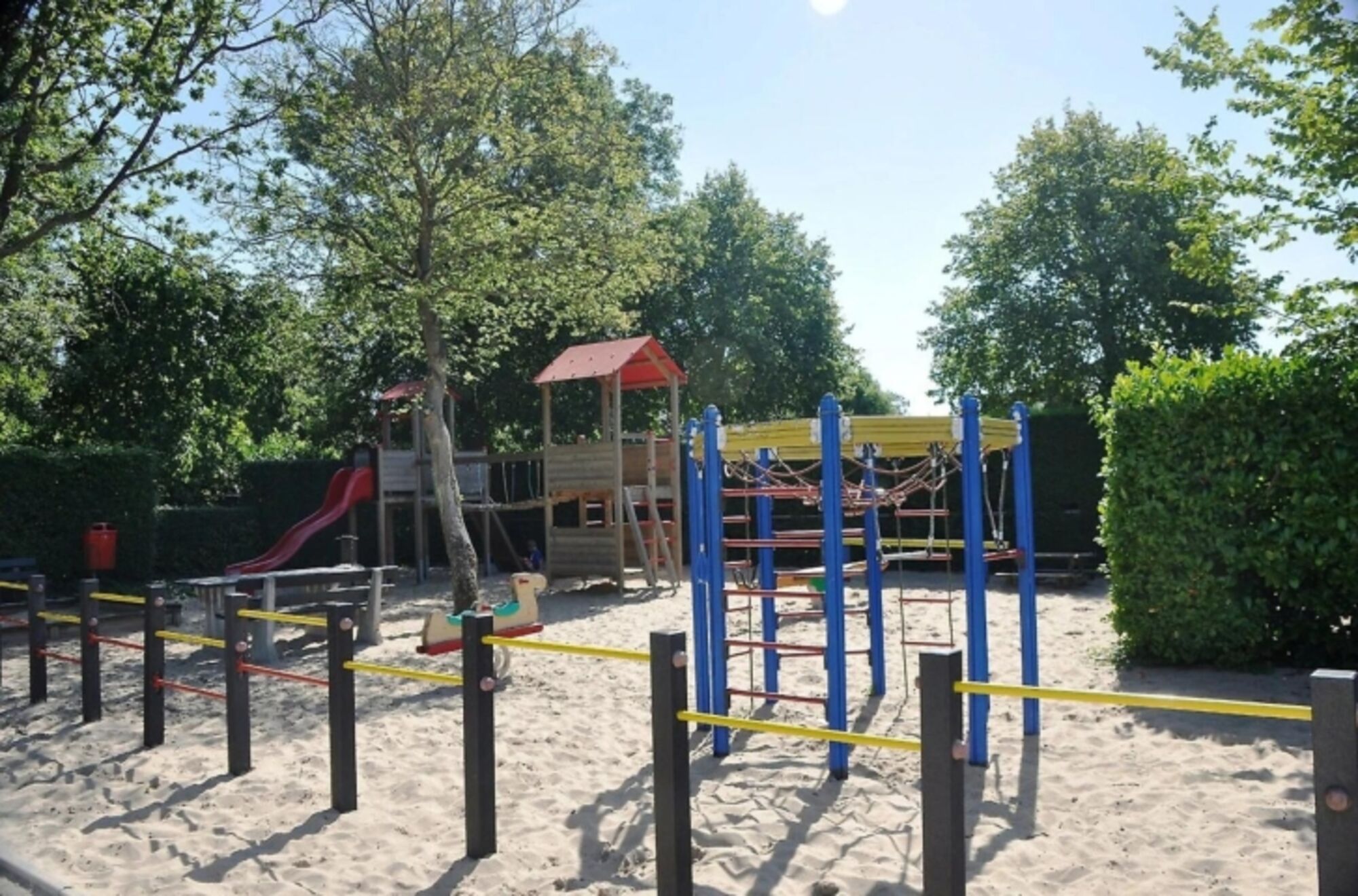 Hier steht das Ferienhaus. Es ist ein gezelliger Familienpark, mit Spielplatz und einer Tennisbahn.