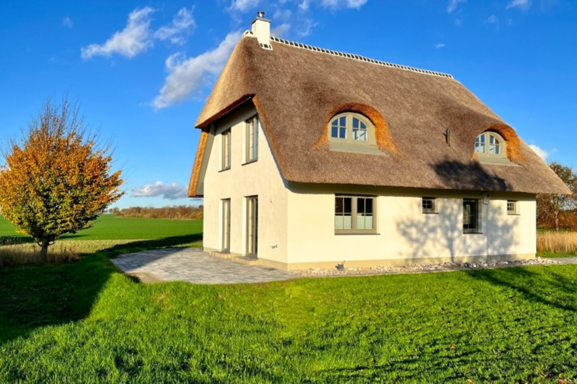 Dieses hinreißende, reetgedeckte Ferienhaus empfängt seine Gäste mit einer Mischung aus stilvoller Eleganz und behaglicher Gemütlichkeit. Schon bei der Ankunft überträgt sich seine besondere Ausstrahlung – hier spürt man sofort: Das ist Urlaub mit Herz.