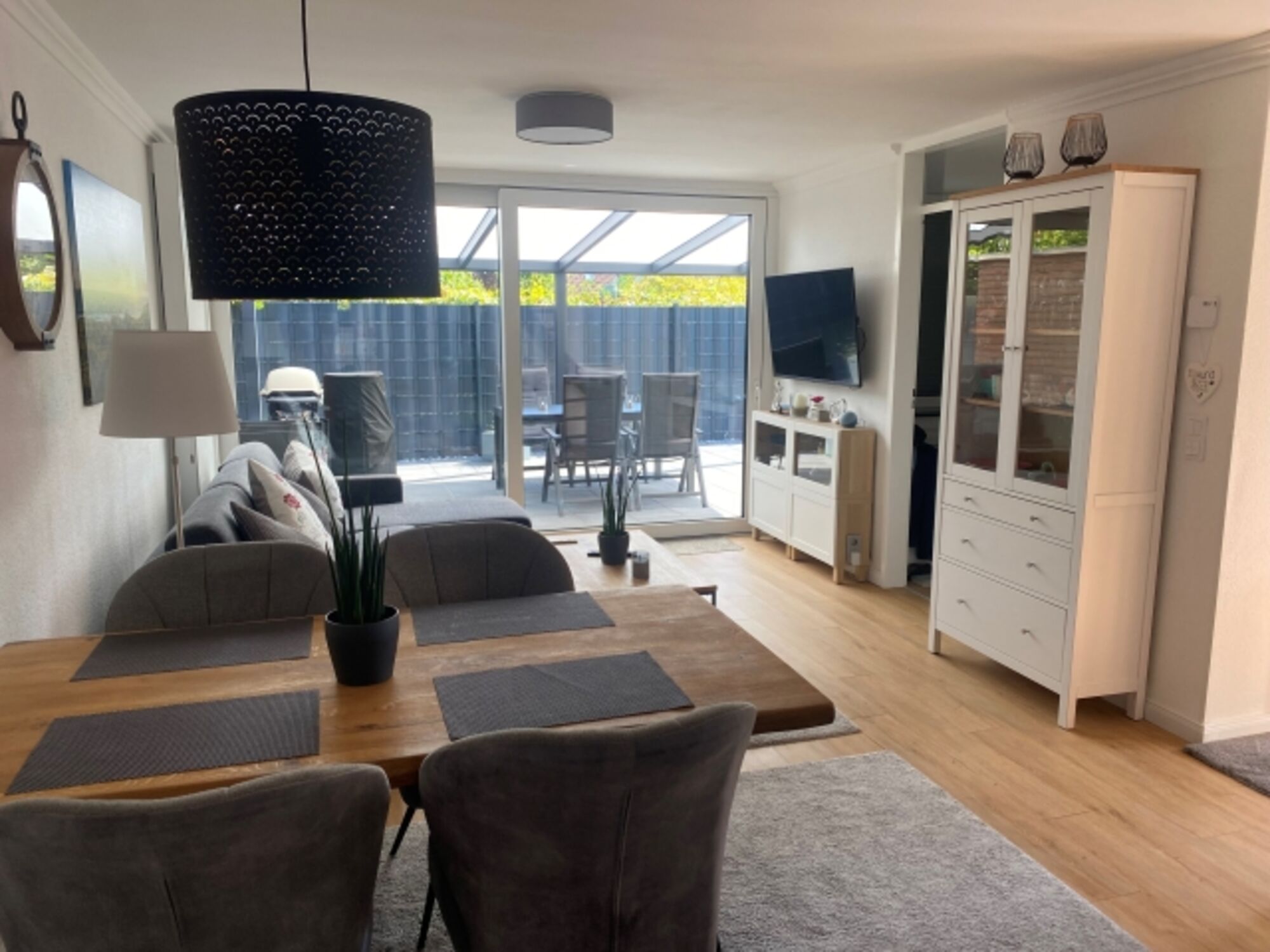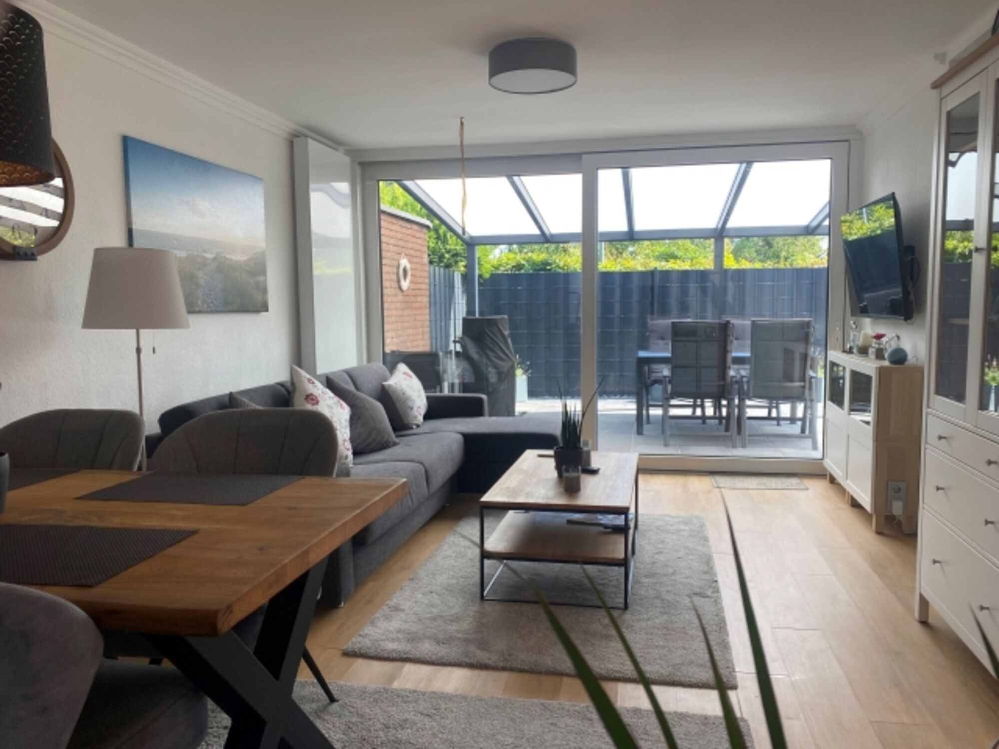 Im Erdgeschoss finden Sie den offenem Bereich für die Küche , Essecke und das Wohnzimmer mit modernen Möbeln.