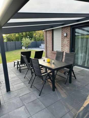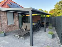 Der Garten ist ausreichend groß, komplett eingezäunt und abschließbar, mit einer großen Rasenfläche, einer überdachten Terrasse inklusive zwei Liegen mit sechs Stühlen und einem Tisch. Der Whirlpool ist innerhalb der Sommerferien nicht nutzbar. Es steht in dieser Zeit aber das beheizte Freibad zur Verfügung. Die Sauna ist von September bis Mai nutzbar. Ausnahmen nach Absprache.