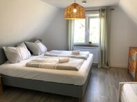 Das Schlafzimmer 1 sind ausgestattet mit einem 180 cm x 200 cm Doppelbett, einer Kommode und einem Kleiderschrank. Hier lässt es sich dank der ruhigen Lage ruhig und entspannt schlafen.