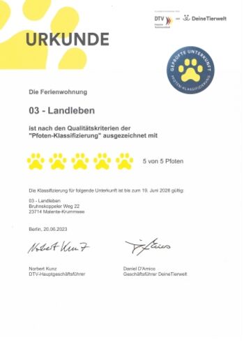 | Ausstattung für Hunde: | Abduschen für Hunde Hundebademöglichkeit auf dem Grundstück Hundebademöglichkeit in der Nähe Hundedecke / Hundekorb Hundespaziergang vom Haus aus möglich Silvester Böllerarm Tierarzt in der Nähe (bis 20km) Umfriedeter Gartenbereich (komplett mit Zaun / nicht nur Hecke) Umfriedetes Grundstück (mit Hecken, Sträucher) Zaunhöhe bis 0,80 Meter |