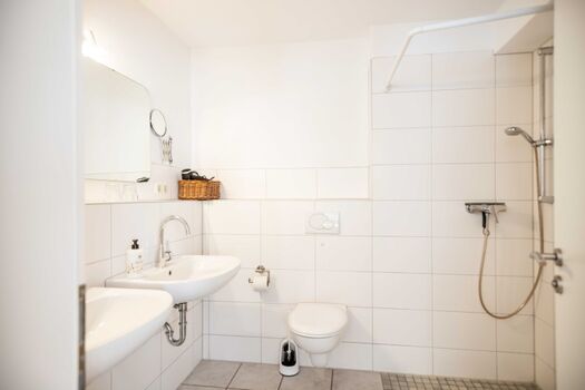 Alle Wohnungen sind medial mit einem Flat-TV (im Obergeschoss mit Streaming Stick), einer kleinen Stereoanlage und W-LAN ausgestattet.