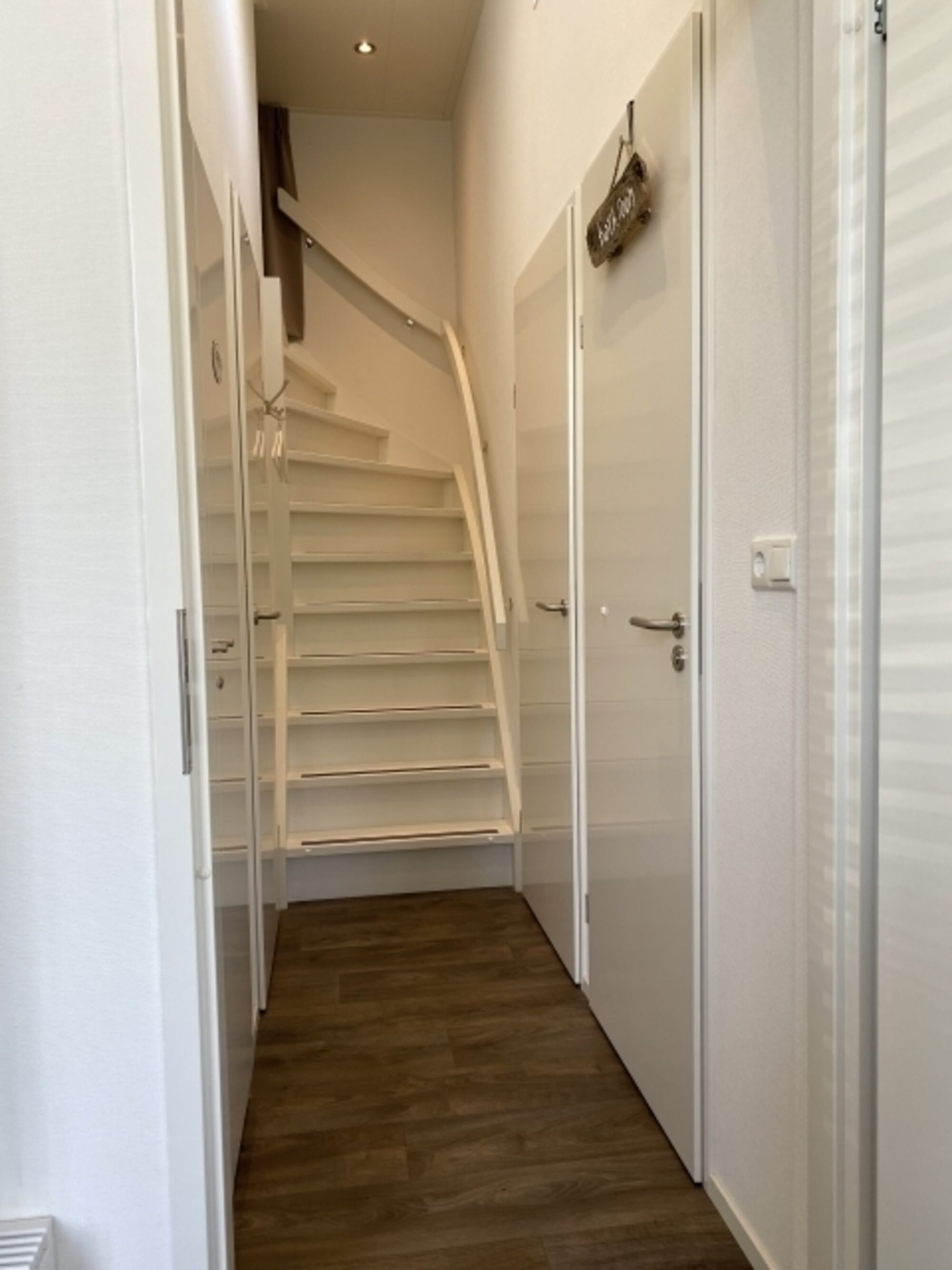 Der Flur zu den Schlafräumen ist durch eine Zwischentüre zum Wohn-/Essbereich getrennt.