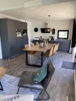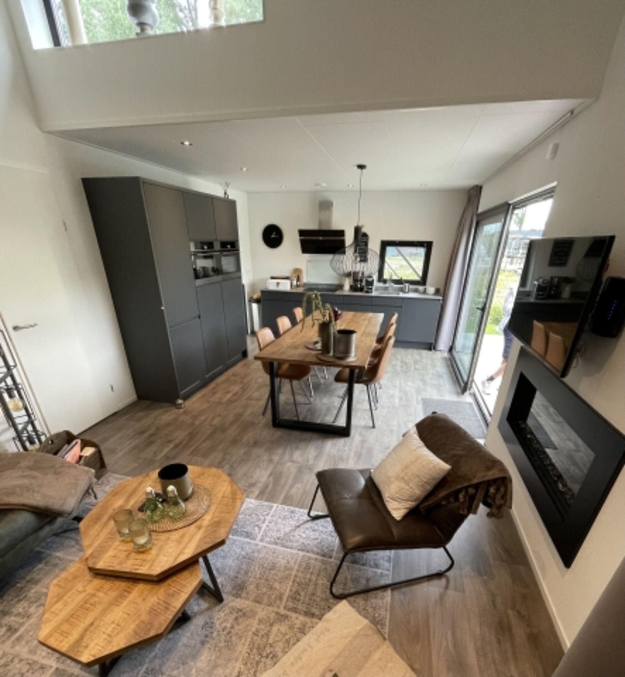 Das lichtdurchflutete 6 Personenhaus bietet eine großzügige Glasschiebetüre die über die gesamte Breite des Essbereiches geöffnet werden kann. Die sehr moderne eingerichtete Küche mit einem großen Esstisch und dem gemütlich anliegenden Wohnbereich mit Elektrokamin laden zum Entspannen ein. Mit Ihrem eigenen Zugang zu Netflix, Amazon etc. genießen Sie auf dem Kabel TV alle Vorzüge.