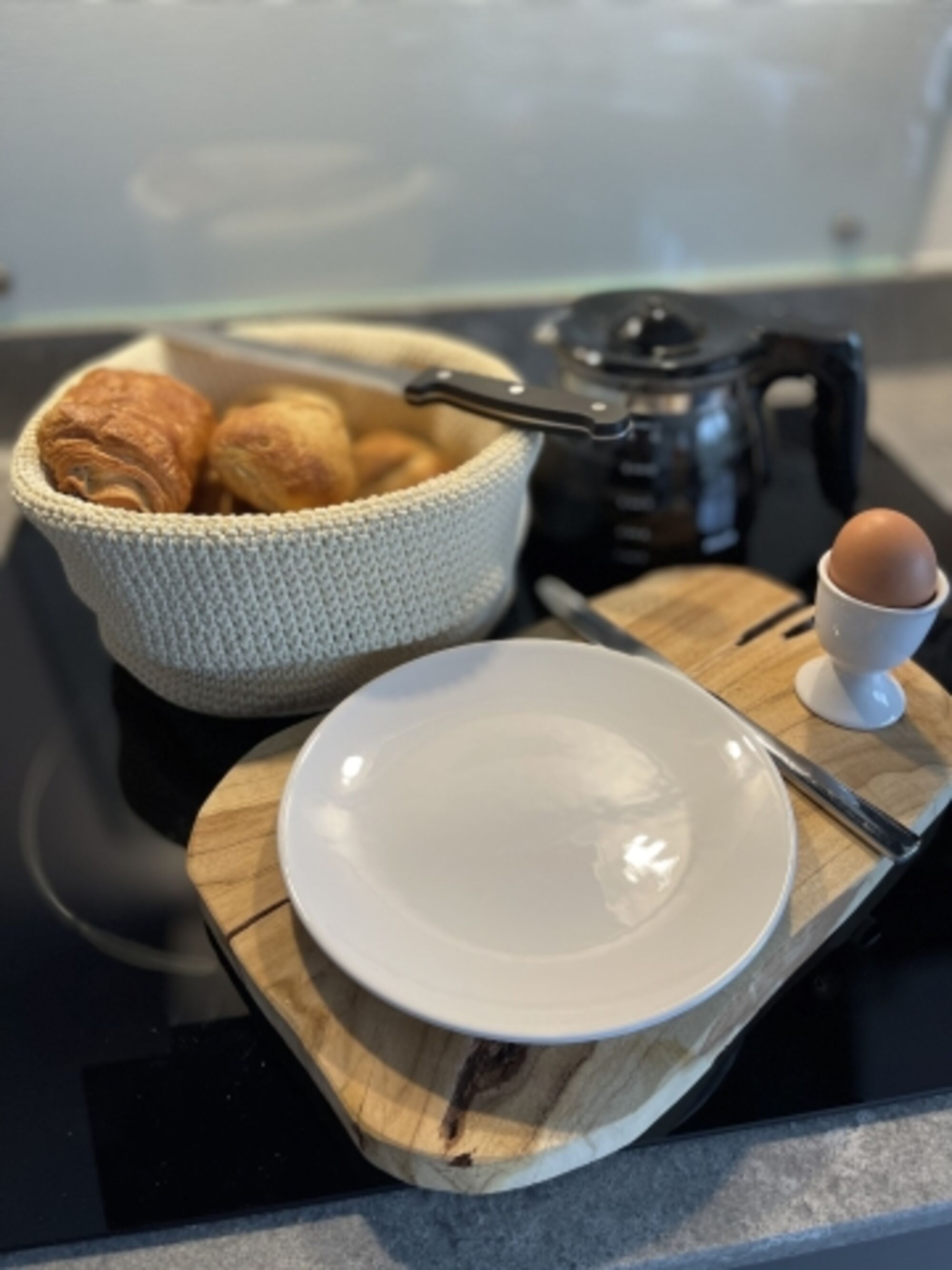 4-Platten Herd, Cerankochfeld, Dunstabzugshaube, Kühlschrank mit Gefrierfach, Mixer, Korkenzieher / Flaschenöffner, Essplatz in der Küche, TV in der Küche