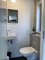 Das Badezimmer ist luxuriös und mit einer zusätzlichen Toillette ausgestattet.
