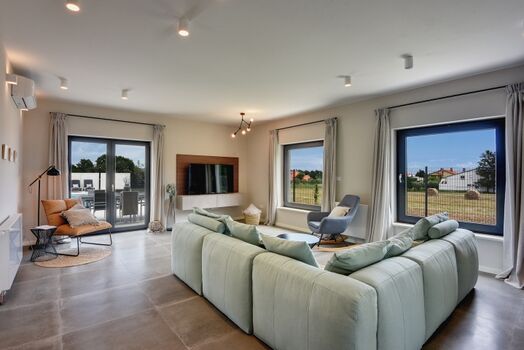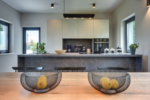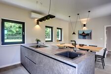 Willkommen in der Villa Sain, einem beeindruckenden Urlaubsort in einem kleinen istrischen Dorf. Diese moderne Villa besticht durch ein außergewöhnliches Innendesign und bietet die perfekte Kombination aus Eleganz und Komfort für Ihren Aufenthalt.
