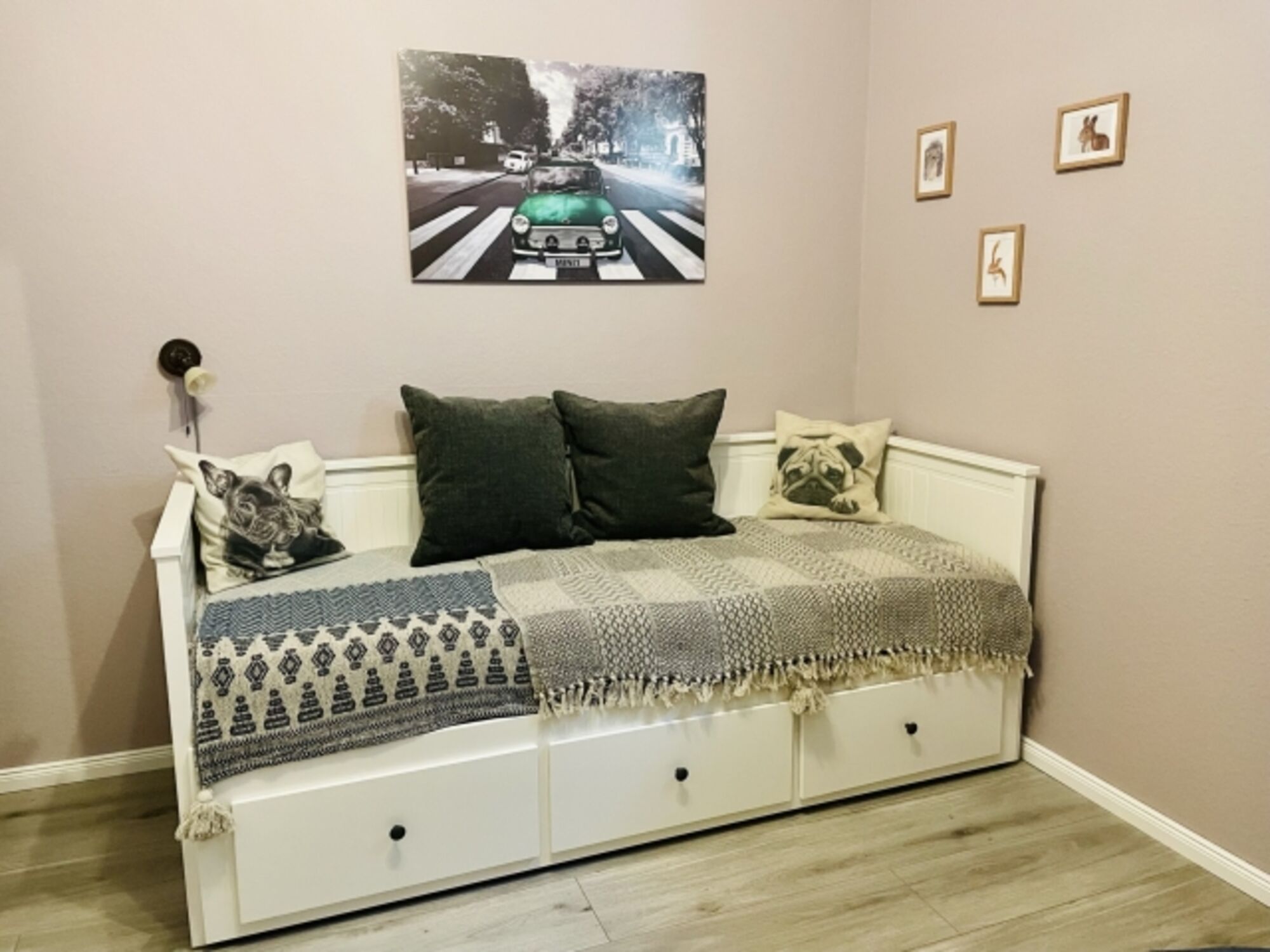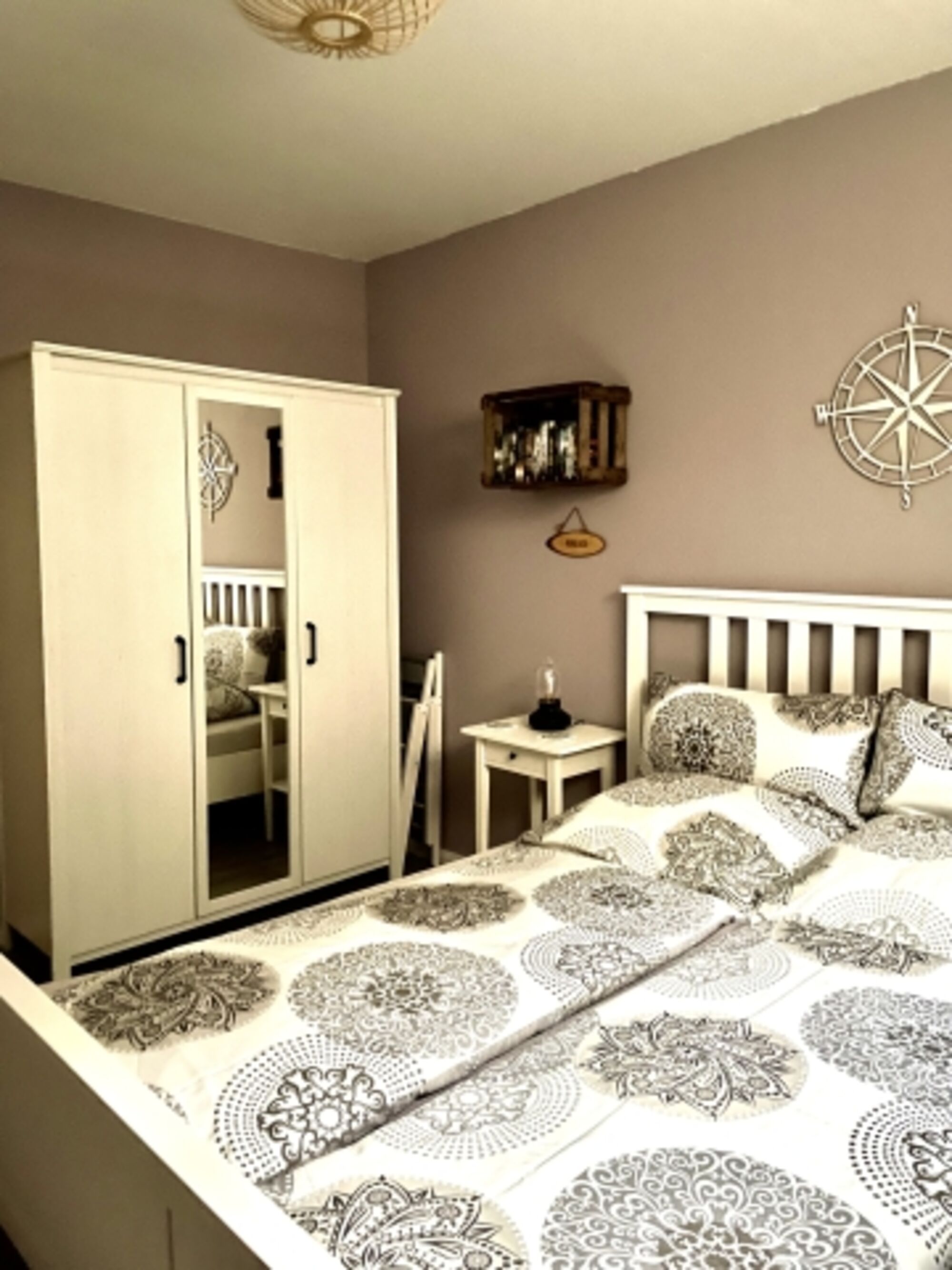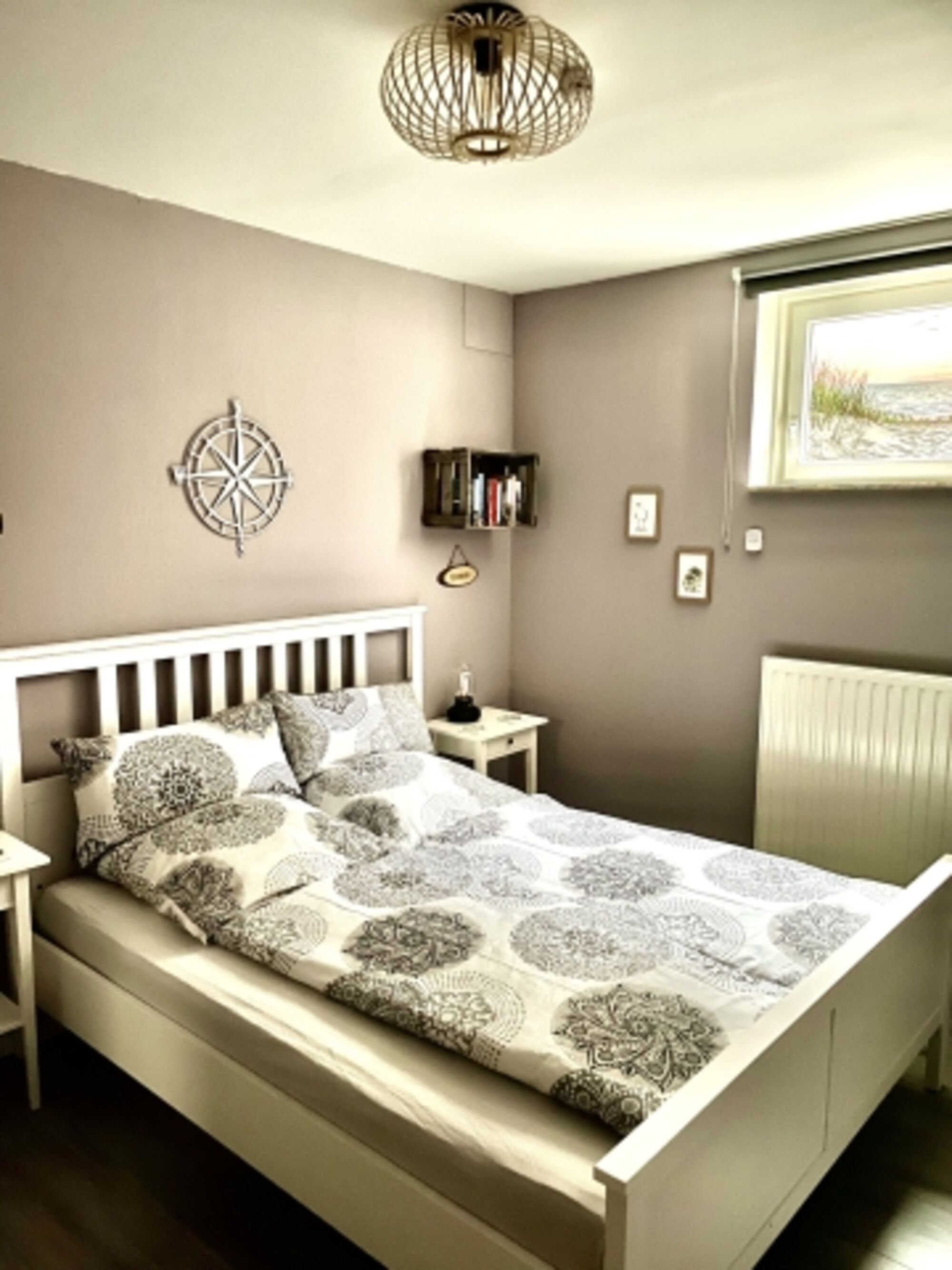 Beide Schlafzimmer sind mit 1,60 x 2,00 Meter Betten ausgestattet, wobei ein Bett auch als gemütliche Sitzgelegenheit genutzt werden kann, da es sich um ein Tagesbett handelt.