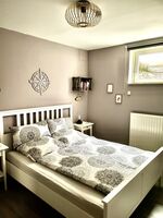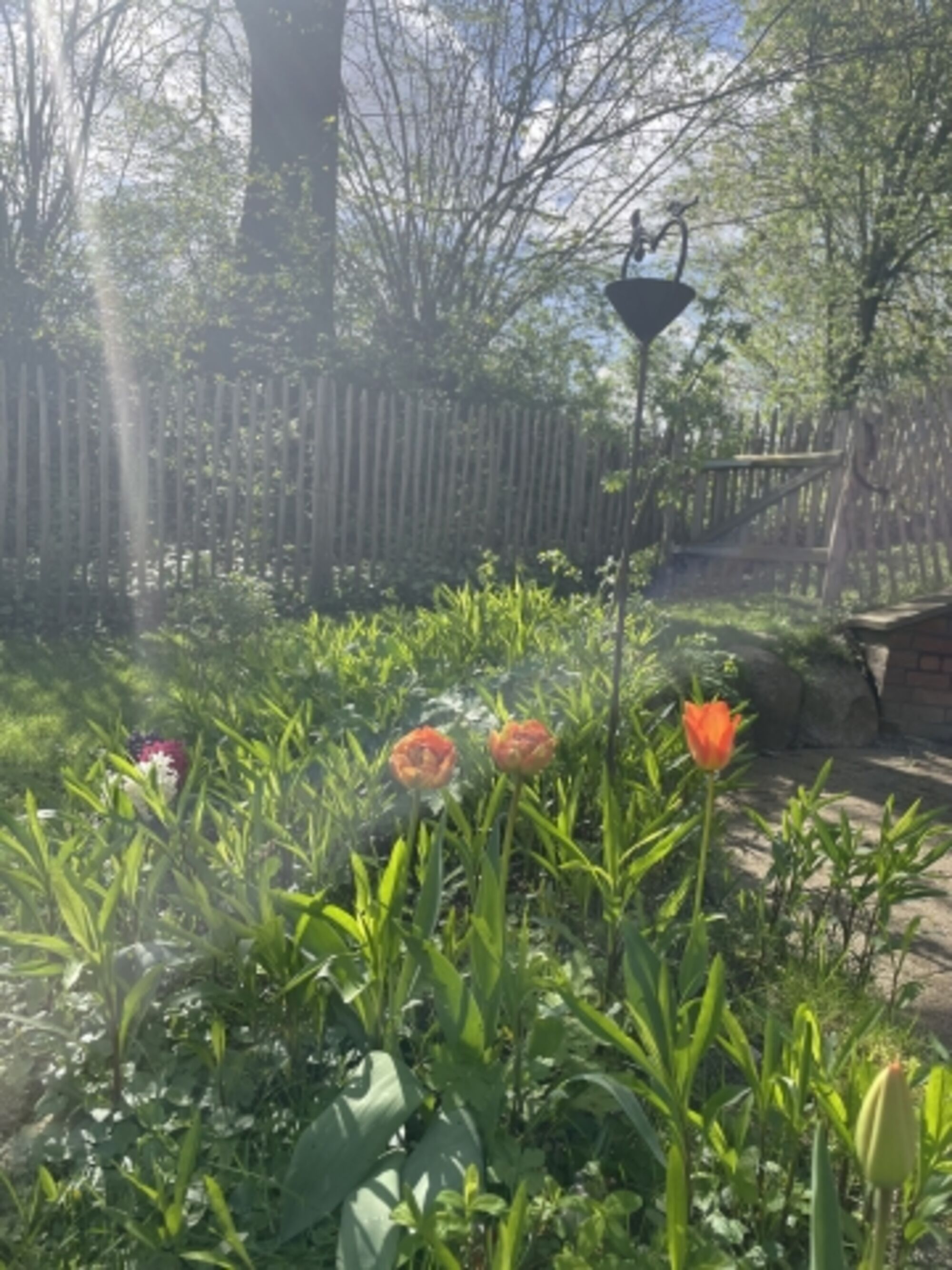 Unser Haus ist in den Hang gebaut, daher befinden sich die beiden Schlafzimmer und das Bad in souterrain-ähnlicher Lage mit dafür typischen Fenstern. Alle Räume befinden sich jedoch auf einer Ebene mit eigenem Zugang und Parkplatz direkt vor der Wohnung. Der Wohnbereich mit offener Küche verfügt über großzügige Sprossenfenster mit Blick auf die Terrasse und den Garten. Die Klönschnacktür flutet den Wohnbereich mit Licht und erlaubt es Ihnen eine frische Brise zu genießen, ohne die Gefahr dass Ihre Vierbeiner entwischen.