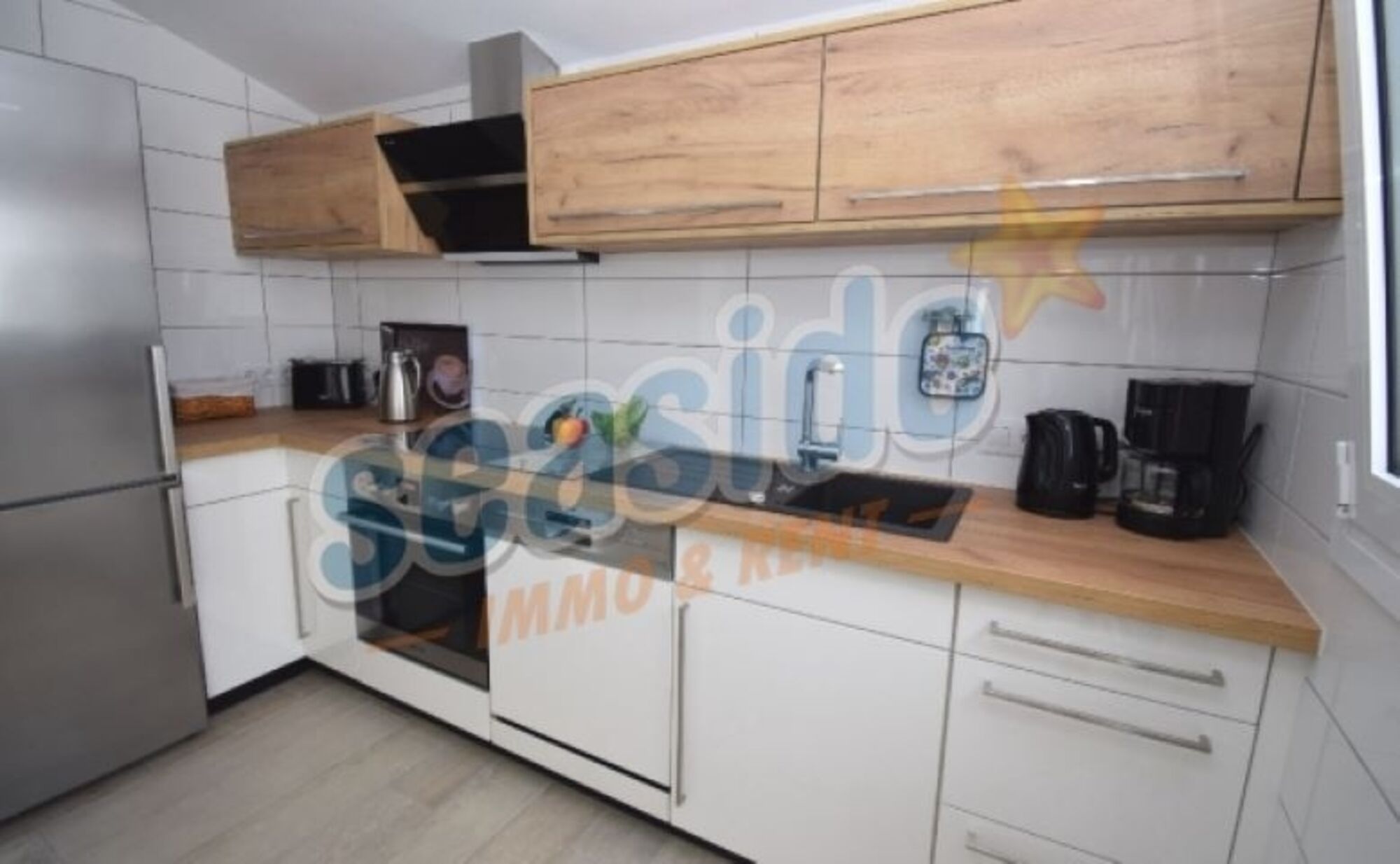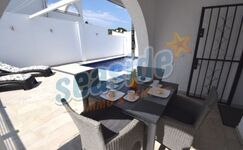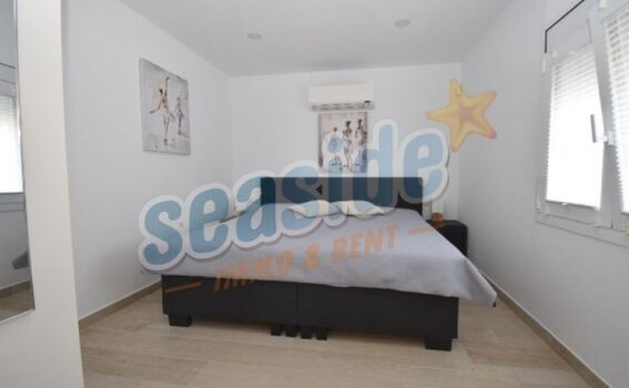 NEUBAU (2022) Ferienhaus für bis zu 4 Pers., Klima, Pool, 2 SZ, 1 Badezimmer, moderne Einrichtung, abgeschl. PKW-Stellplatz, in zentraler u. ruhiger Lage nur 500 m ins Zentrum u. 850 m zum Strand.