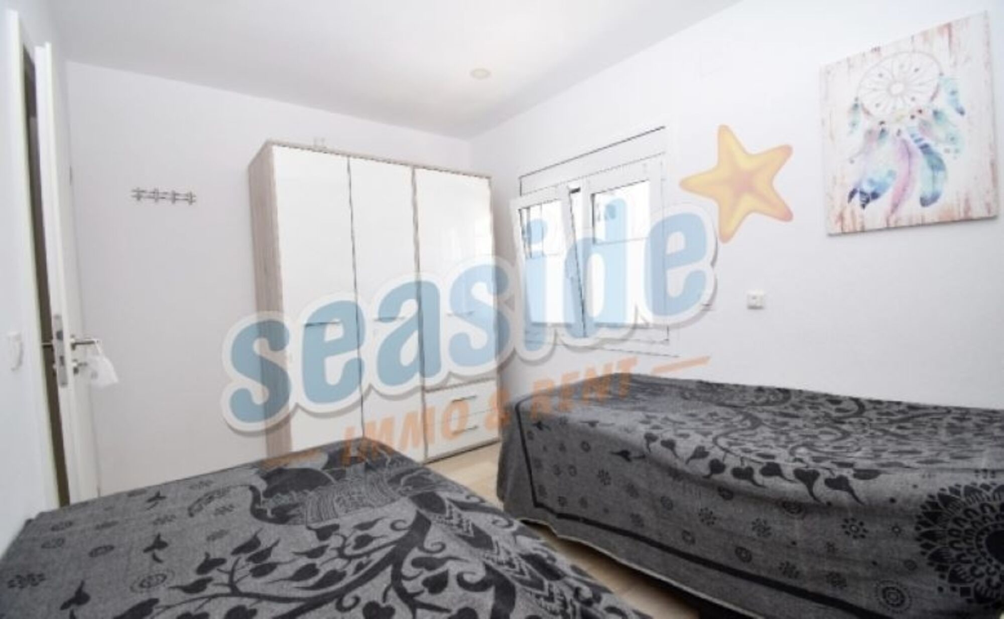 1 Schlafzimmer mit 2 Einzelbetten, Klima, Kleiderschrank, Fenster mit Fliegengittern und elektrischen Rollläden.