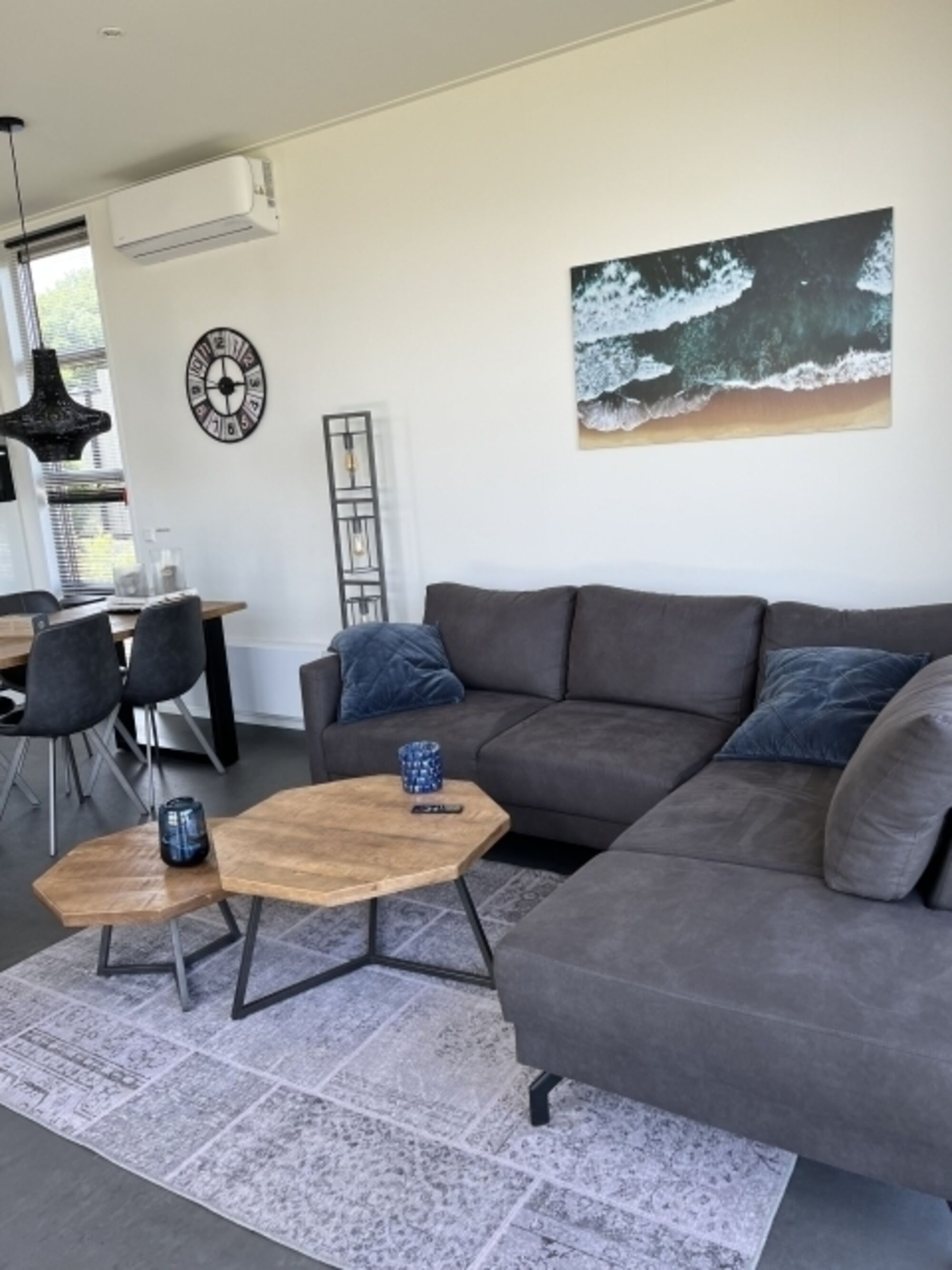 Im 70m² großen Ferienhaus erwartet Euch außerdem ein modernes Tageslichtbad mit Rainshower-Dusche und Gäste-WC im Flur. Der große, helle Wohnbereich ist ausgestattet mit Esstisch und Stühlen, einem gemütlichen Sofa, schwenkbarem TV, Elektro-Kamin sowie zwei gemütlichen Sesseln. Smart-TV und Highspeed-Internet runden das Multi-Media Angebot ab. Die voll ausgestattete Küche ist in den Wohnbereich integriert.