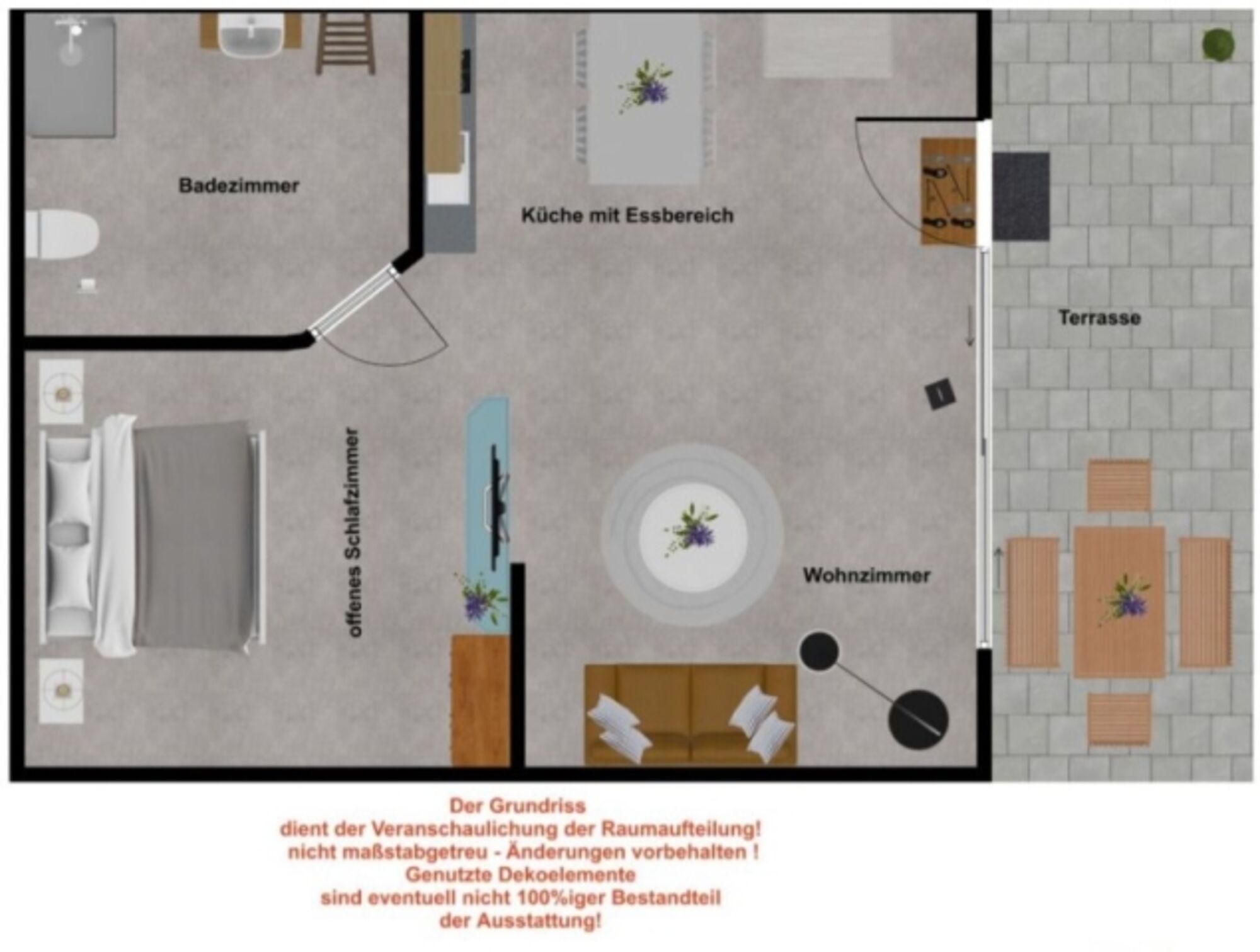 Die große Südterrasse mit Gartenmöbeln rundet die Ausstattung ab.