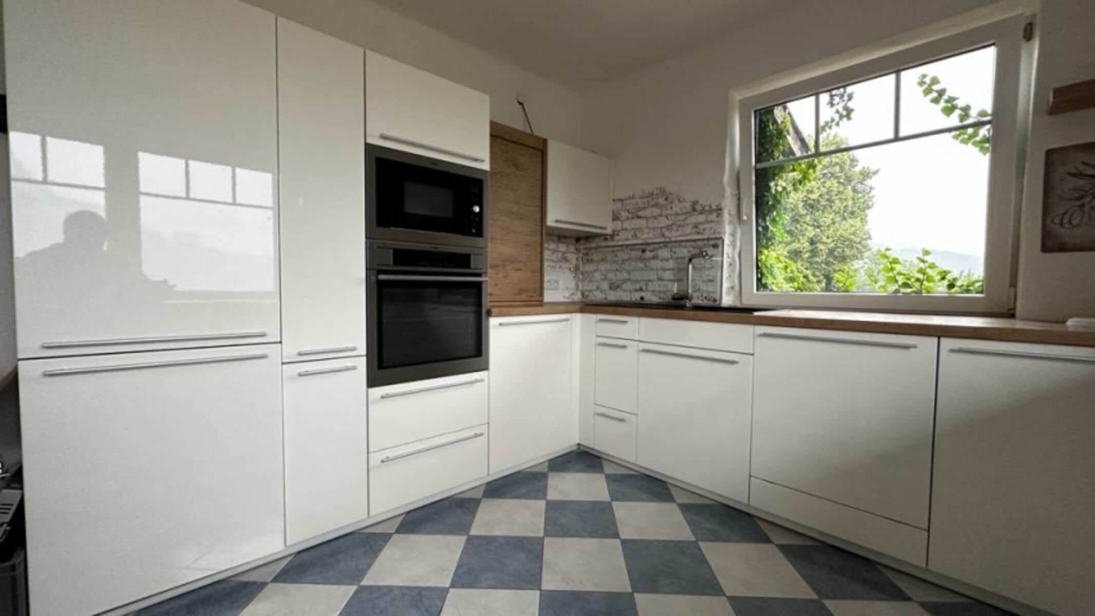 Induktionsherd, Dunstabzugshaube, Gefrierschrank, Eierkocher, Geschirrhandtücher, Mülltüten, Essplatz in der Küche