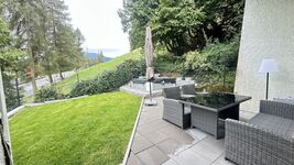 * eigener Bereich Garten/Terrasse mit Whirlpool und Seeblick (an Ferienwohnung direkt angrenzend)