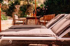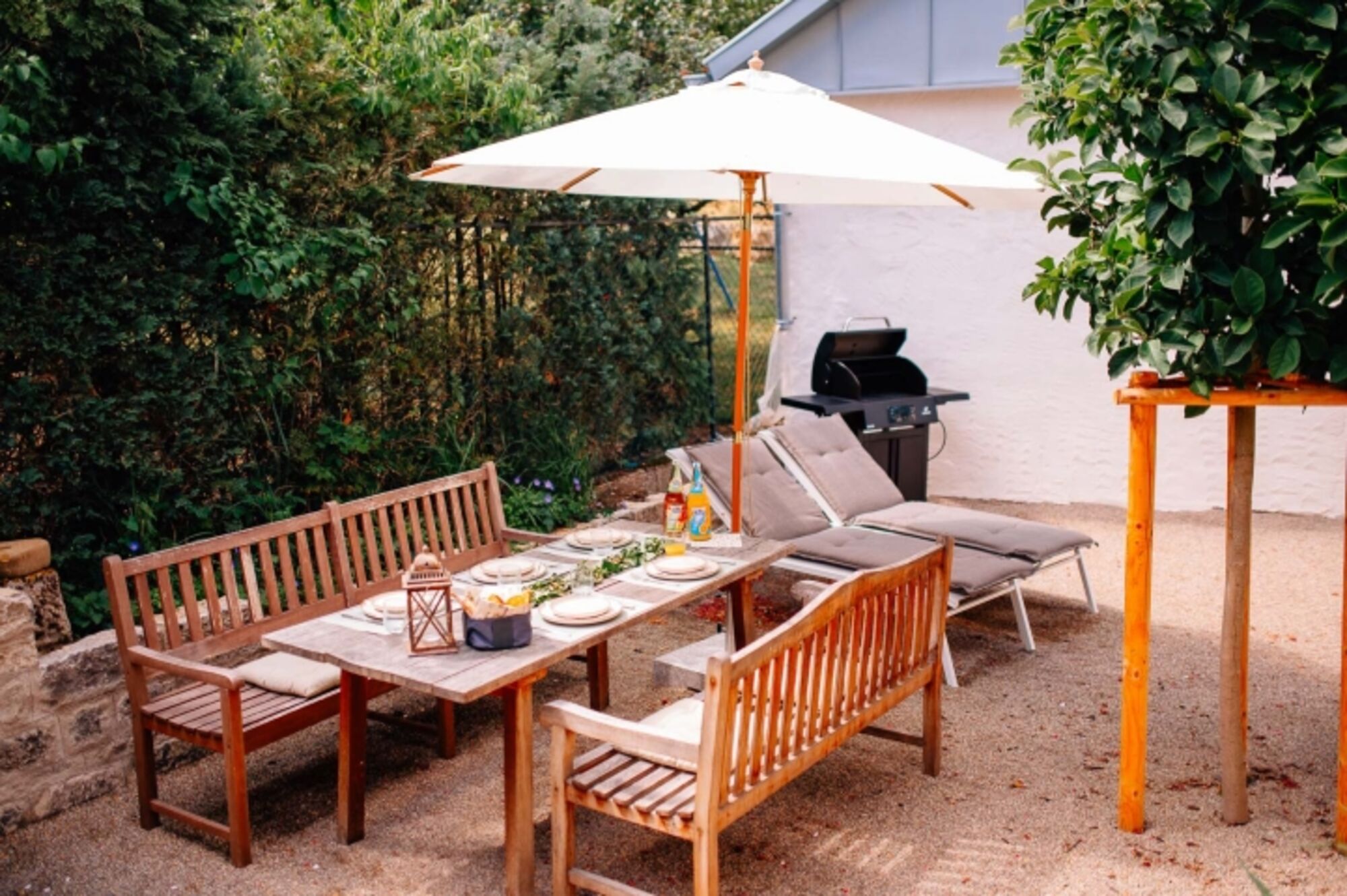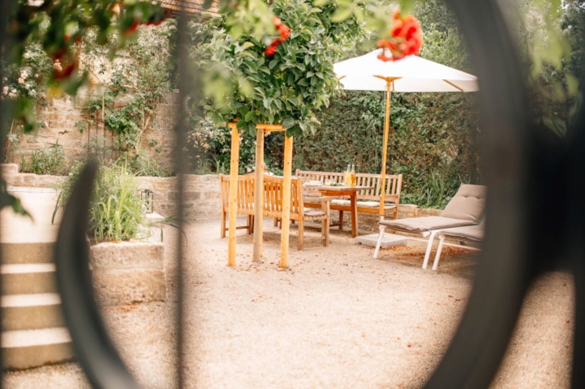 Der umzäunte Freisitz im Garten hinter dem Haus bietet Ihnen (Sicht-) geschützt Platz für schöne und entspannte Stunden im Freien - vom Frühstück am Morgen, wenn sonst nur ein paar Hühner von nebenan auf den Beinen sind, über die ruhigen Stunden am Mittag mit einem guten Buch bis hin zum Gläschen Wein am Abend.