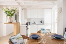 Der Wohnbereich ist gemütlich eingerichtet und bietet einen herrrlichen Blick auf das Wasser. Die Küche ist voll ausgestattet und verfügt über alle notwendigen Geräte und Utensilien, um Ihre Lieblingsgerichte zuzubereiten. Auf der Terrassse können Sie den Blick auf das Wasser genießen oder sich einfach entspannen und die Sonne genießen.