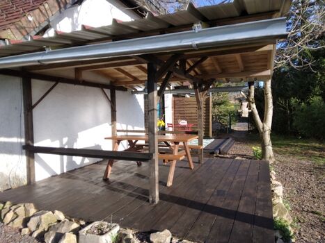Urige genuegsame Huette in der puren Natur, wo Hunde willkommen sind