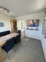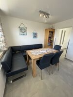 Ferienwohnung Seehund: max. 4 Personen + 1 Kleinkind bis zum 3. LJ + 2 Hunde, ca. 750 m zum Strand, eingezäunter Gartenanteil (Höhe: 1,20m), 1 WZ, 1 SZ, 1 Babyzimmer (klein), 1 KÜ, 1 Bad