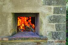 TV, TV-Flachbildschirm, Offener Kamin, Kaminofen, 3er-Sofa, Sessel