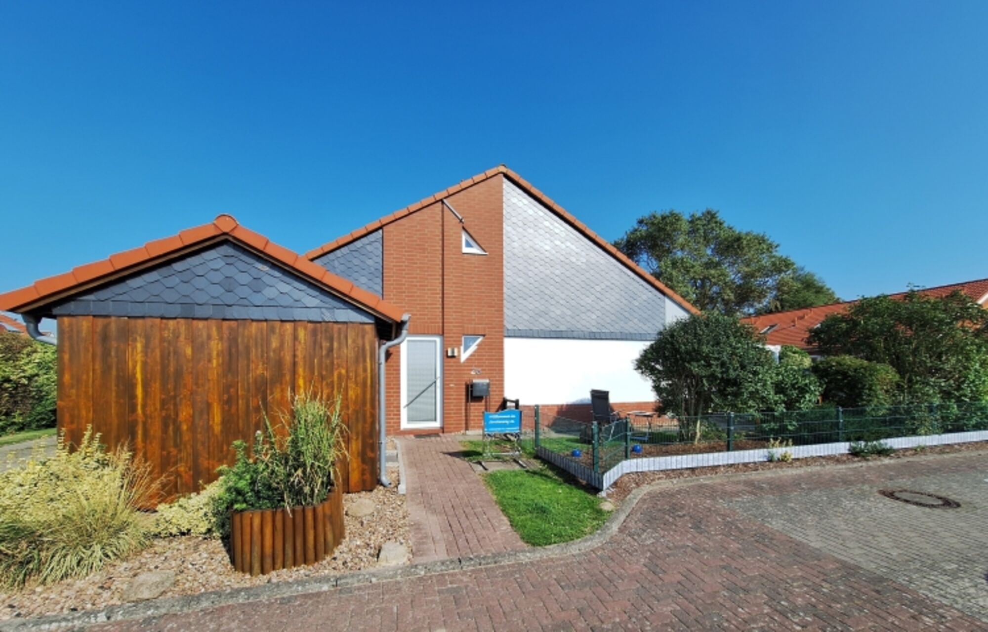 Unser Ferienhaus ist kompl. für 4 Personen und einem Kleinkind ausgestattet , hat einen schönen Garten mit Zaun und eine große Terrasse mit Gartenmöbel. Die Terrasse ist überdacht incl. elektrischer Markise. Ein Sonnenschirm steht separat bereit. Im Garten befindet sich ein Grillplatz mit Steingrill.