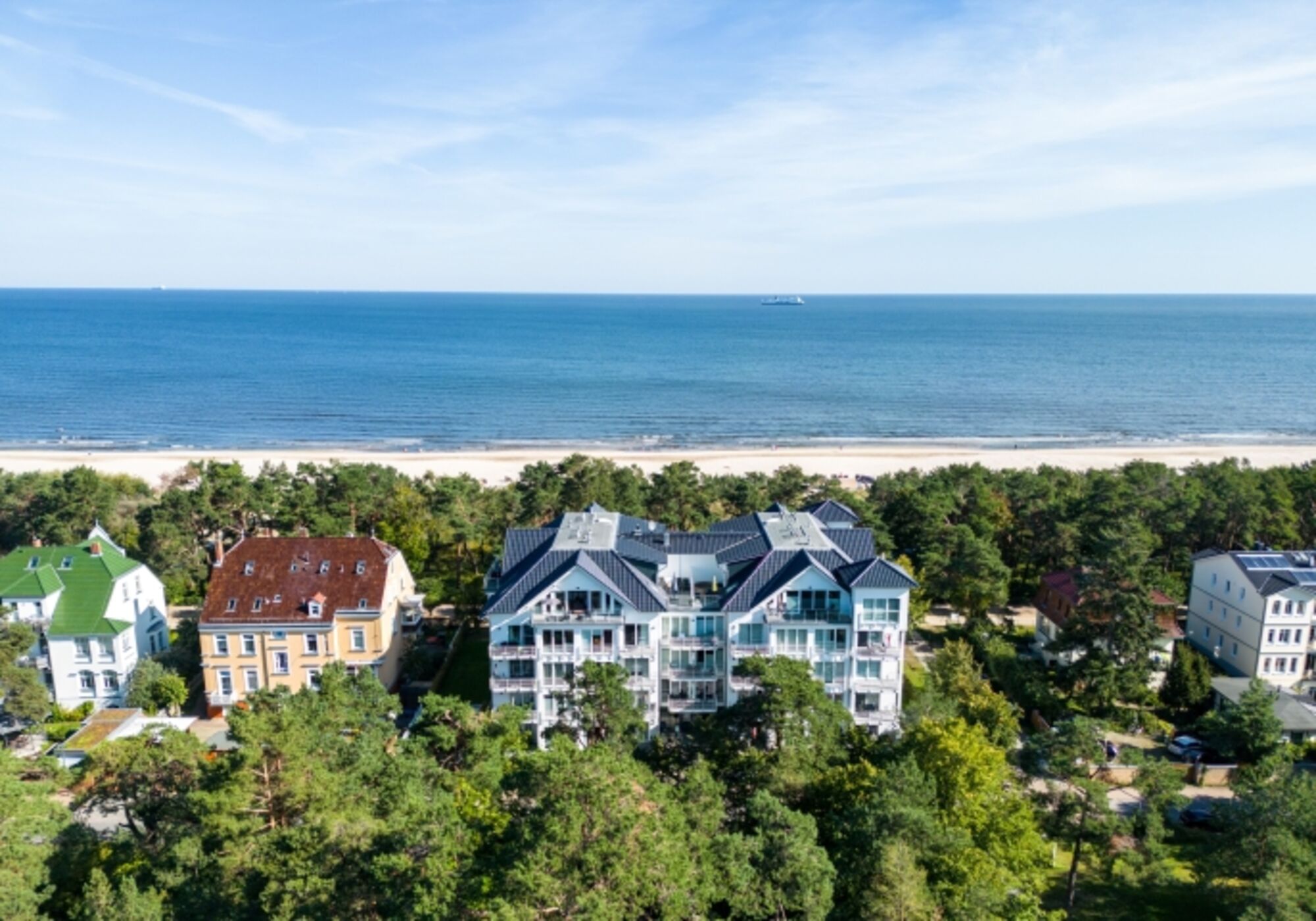 Die Strandresidenz Else-Marie wurde 2018 neu erbaut im ruhigen, östlichen Teil des Seebads Albeck. Die Residenz wird nur durch die Strandpromenade und die Dünen vom feinsandigen und breiten Strand und der Otsee getrennt. Zum Zentraum von ahlbeck und zur Seebrücke sind es trotzdem kaum 10 Minuten zu Fuss.