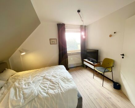 Die Ferienwohnung "Ahoi Marie" bietet Ihnen sechs komfortable Schlafmöglichkeiten in drei gemütlichen Schlafzimmern. Hier können Sie sich nach einem ereignisreichen Tag bestens ausruhen und neue Energie für kommende Abenteuer tanken. Das 3 Schlafzimmer befindet sich unter dem Dach mit Schrägen Wänden.