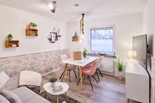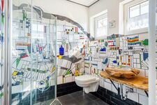 Willkommen im "Kunst Apartment" – einer Ferienwohnung, die weit mehr ist als ein gewöhnlicher Rückzugsort. Auf großzügigen 70qm erwartet Sie ein inspirierendes Ambiente voller kreativer Details und einzigartigem Charme. Die Wohnung liegt im Erdgeschoss und verfügt über zwei gemütliche Schlafzimmer, wovon eines über ein Boxspringbett und ein weiteres über ein normales Doppelbett verfügt. Besonderes Highlight ist das Tageslichtbad im fantasievollen Hundertwasserstil – ein echtes Kunstwerk, das Ihren Aufenthalt unvergesslich macht. Farben, Formen und verspielte Mosaike verschmelzen hier zu einem außergewöhnlichen Wohlfühlerlebnis. Besonders komfortabel ist das zur Verfügung stehende separate WC. Der Wohnbereich wurde ebenso wie das Badezimmer erst kürzlich renoviert und verfügt über eine große Wohnlandschaft sowie einen Esstisch. Jedes Element in dieser Wohnung wurde mit Blick fürs Detail ausgewählt und unterstreicht den einzigartigen Charakter der Unterkunft, wie z.B. die individuell gestaltete Garderobe. Somit ist das "Kunst Apartment" die perfekte Wahl für alle, die das Außergewöhnliche lieben – stilvoll, individuell und mit viel Herz gestaltet. Ein weiteres Plus ist die hervorragende Lage, denn die berühmten Zwillingsmühlen sind nur einen Katzensprung entfernt. Neben einer großzügigen und möbilierten Terrasse bietet die Wohnung außerdem einen abschließbaren Fahrradabstellplatz sowie einen reservierten PKW-Stellplatz.