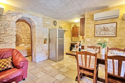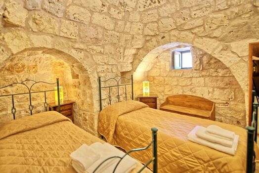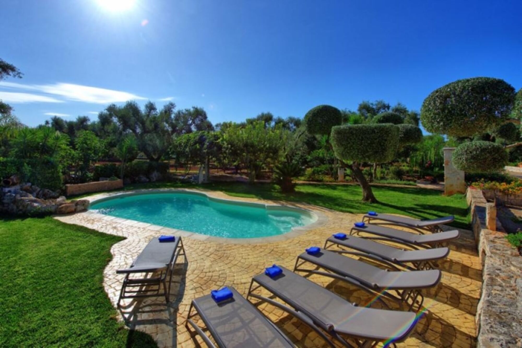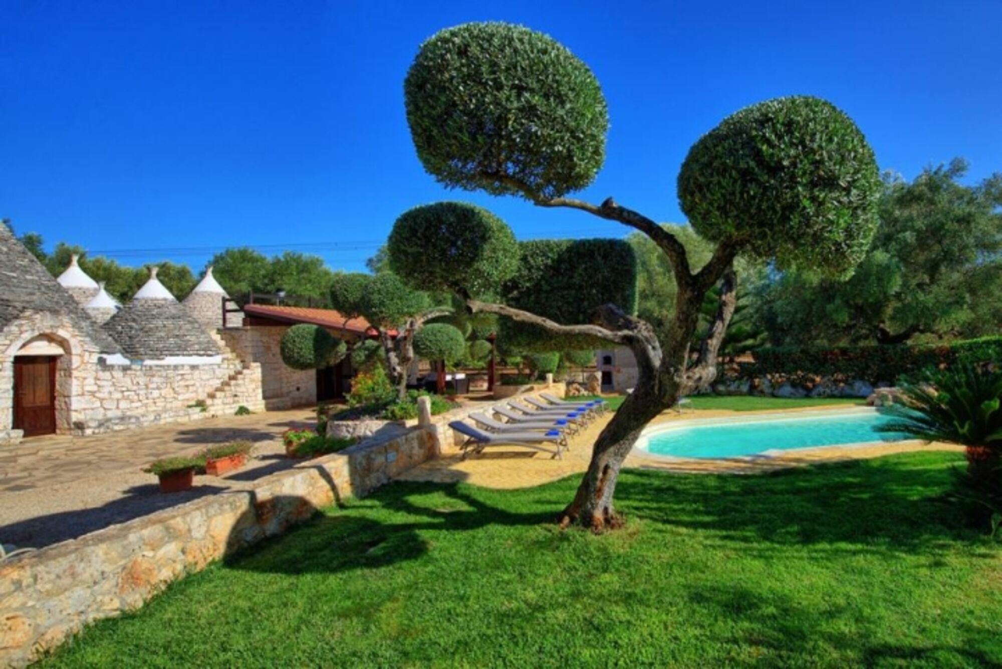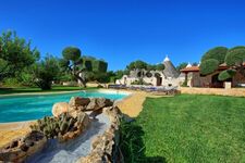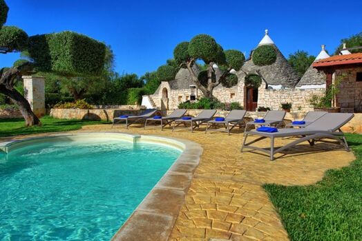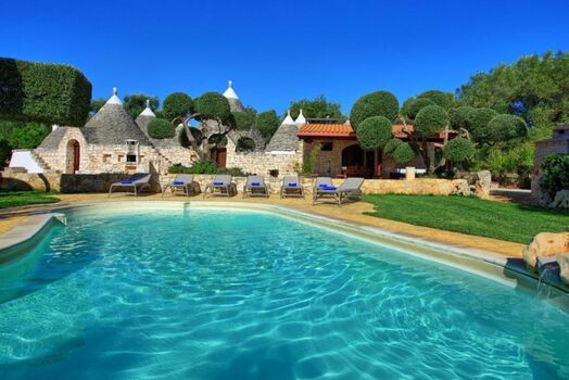 Bestehend aus 11 Trulli, welche im Innenbereich miteinander verbunden sind; wurde eine charmante und charakteristische Unterkunft geschaffen. Der wunderschöne Aussenbereich bietet einen großen Pool und ist der ideale Ort für einen Aufenthalt im Freien, bestückt mit schattenspendenden Bäumen und einer Vielzahl an weiteren Pflanzenarten. Diese Ferienvilla ist die ideale Lösung für Familien oder Paare mit Hund, die ruhig urlauben wollen, und dennoch in kürzester Zeit das schöne Apulien in Süditalien und die traumhaften Strände der Gegend erreichen möchten.