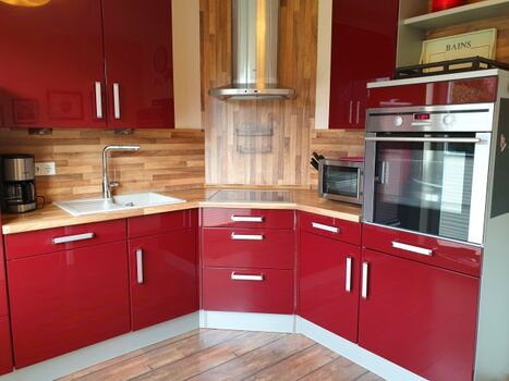 Küche: Mikrowelle, Cerankochfeld, Kaffeemaschine, Geschirrspüler, Kühlschrank, Gefrierfach, Backofen, Wasserkocher, Dunstabzugshaube, Toaster,
