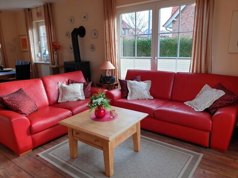 Zusatzaustattung: Außenjalousien, Waschmaschine, WLAN, Kaminofen, Stereoanlage (Radio/CD-Player), Flachbildschirm-Fernseher, SAT-TV, DVD-Player, Sauna, Bücher, Spiele, Bollerwagen, Treppenschutzgitter, Hochstuhl, Kinderreisebett
