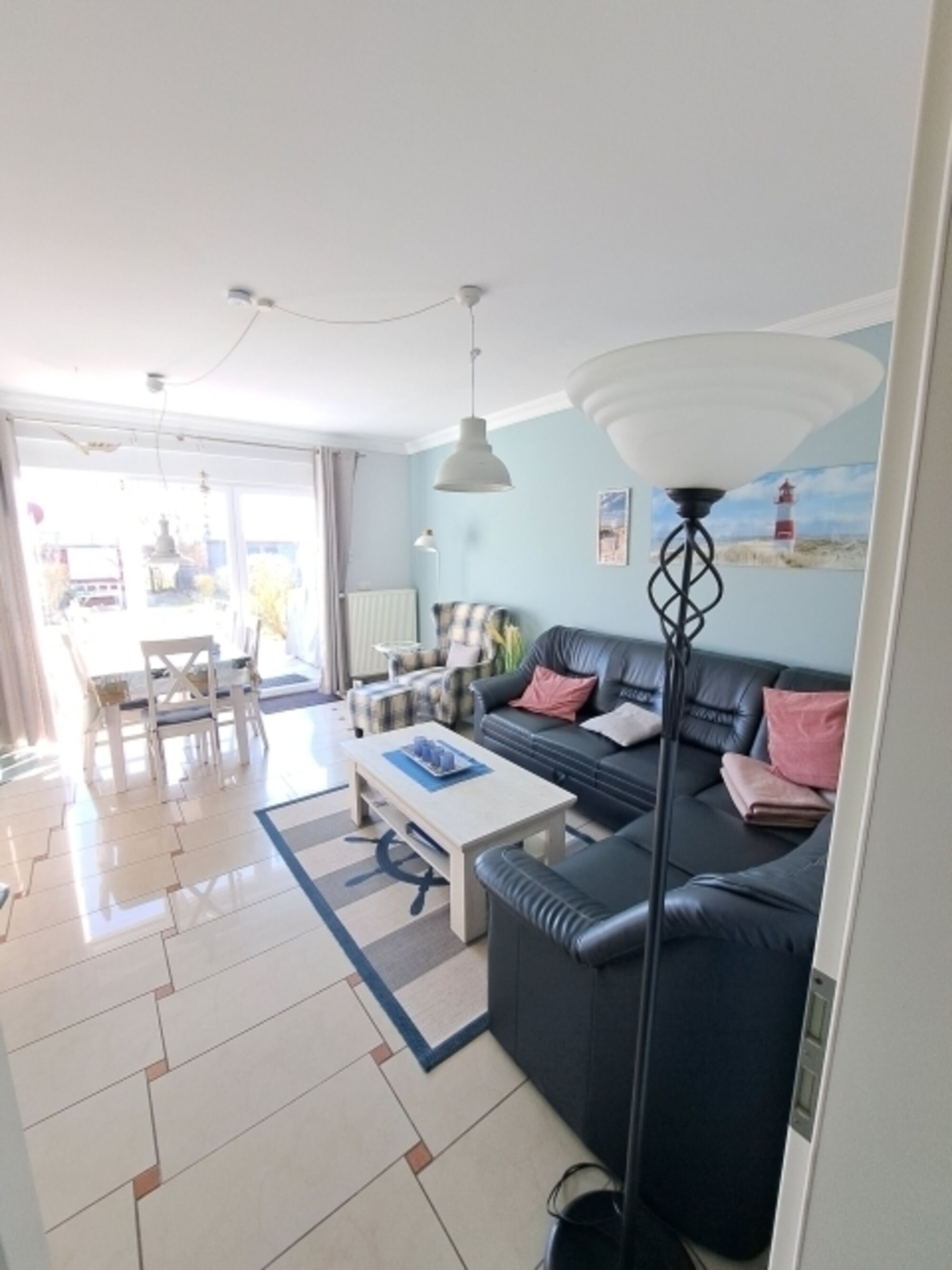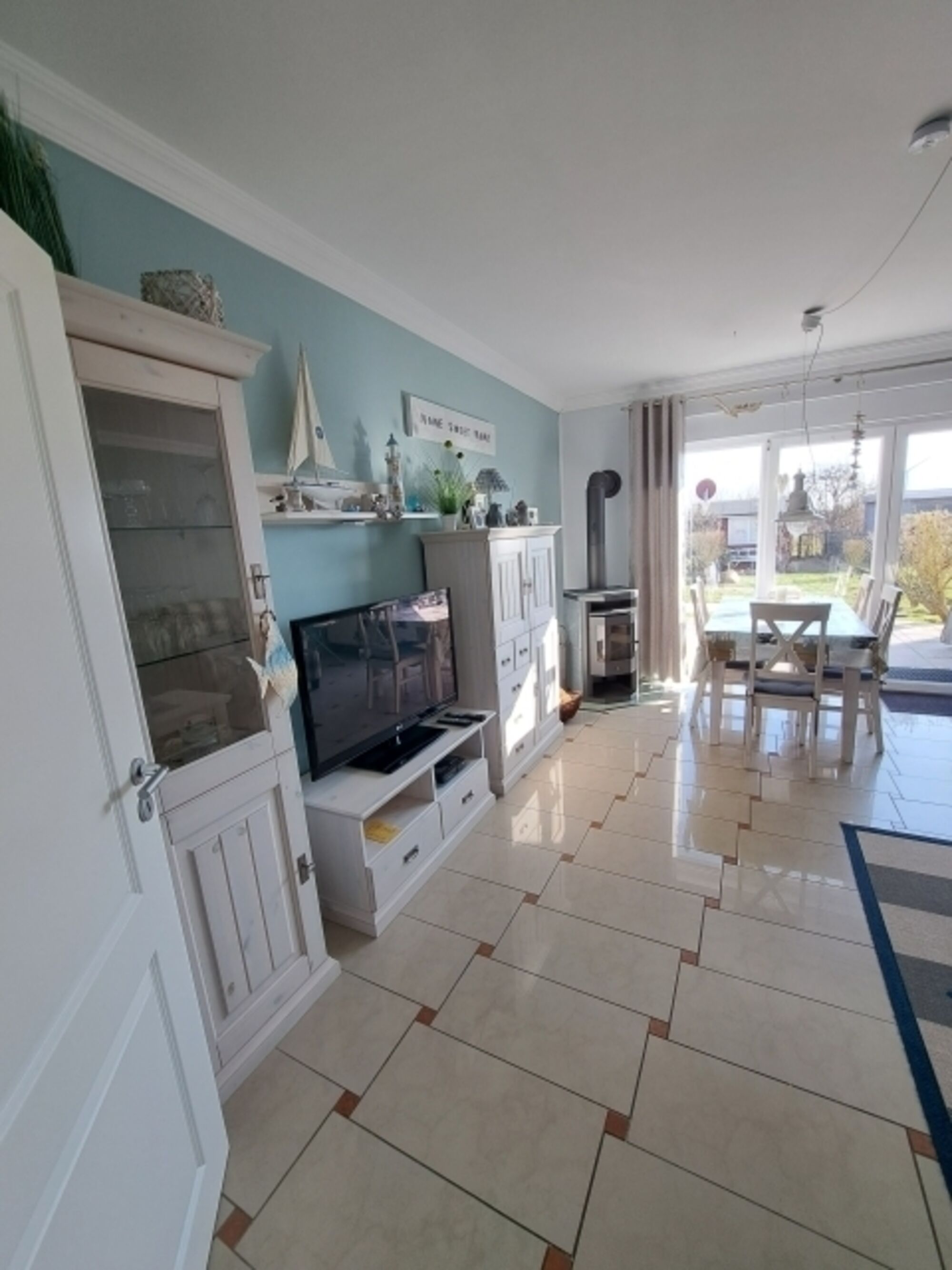 Die 90m² Wohnfläche verteilt sich auf zwei Etagen. Im Erdgeschoss befindet sich die Küche (Induktionskochfeld, kleiner Gefrierschrank), Gäste WC, HW Raum sowie das Wohn-Esszimmer mit Kaminofen. Vom Wohnbereich haben Sie direkten Zugang zur Südterrasse die sich mit einer elektr. Markise beschatten lässt. Ausreichend vorhandene Holzgartenmöbel mit Auflagen, Grill sowie ein Strandkorb laden zu gemütlichen Grillabenden ein.