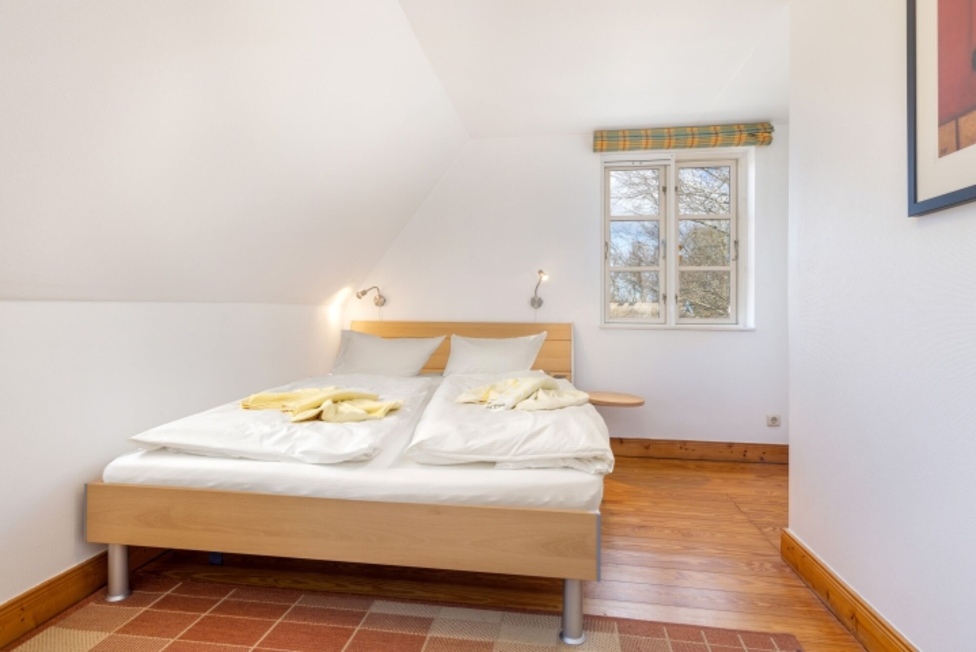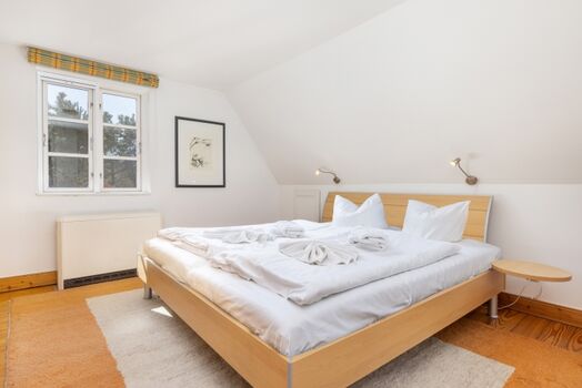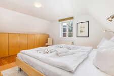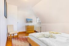 Ein paar Treppenstufen höher finden Sie im Dachgeschoss Ihre beiden Schlafzimmer mit jeweils einem komfortablen Doppelbett. Hier werden Sie himmlisch nächtigen. Durch die bei Bedarf geöffneten Fenster – versehen mit Insektenschutzgittern – kommt im Sommer eine kühle Brise vom nicht weit entfernten Meer. Eines der Schlafzimmer verfügt zusätzlich über einen zweiten Fernseher. Ein weiteres Duschbad/WC rundet diese Etage ab.