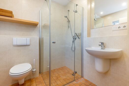 Im Erdgeschoss gibt es außerdem einen Flur mit Garderobe, ein Duschbad/WC und einen Hauswirtschaftsraum mit kostenfrei nutzbarer Waschmaschine nebst Bügel- und Reinigungsgeräten.