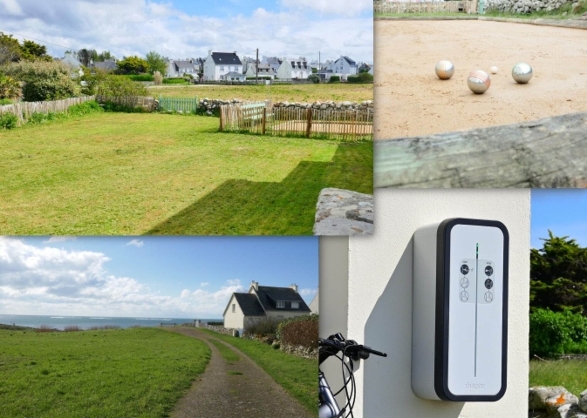 Das gesamte Gartengrundstück ist umschlossen von typisch bretonischen Steinmauern. Für die Spieler gibt es eine Tischtennisplatte und eine eigene Boulebahn. Auf dem Grundstück kann das Auto bequem abgestellt werden und anschließend an die eigene E-Ladestation am Haus aufgeladen werden.