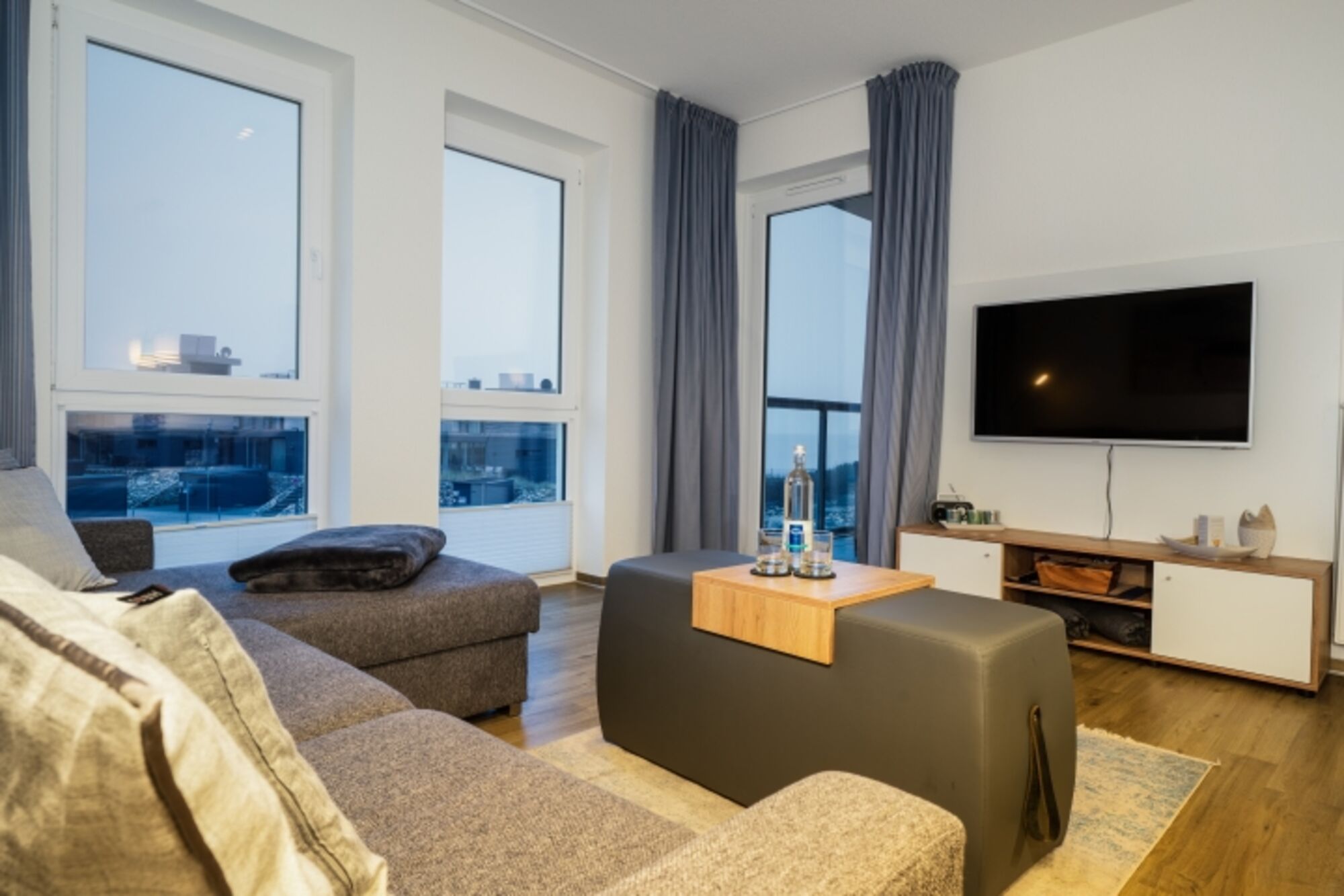ihr gelangt vom Parkplatz vor dem Haus direkt mit dem Fahrstuhl in die 1. Etage. Wir haben versucht, dass sich Hund, wie auch sein Herrchen hier wohlfühlen. Von dem Balkon hat man einen herrlichen Ausblick aufs Meer. In der Wohnung ist zusätzlich zum entspannen eine hochwertige Armstark- Wärmekabine verbaut. Sowie für die Unterhaltung sorgt schnelles WLAN und 2 Smart TV's mit Sky Programmen (Bundesliga HD, Sport 1 HD, Cinema HD, Family HD), wenn das Wetter mal nicht so mitspielt.