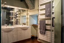 Doppelwaschbecken, Massagedusche, Regendusche, Spiegel, Fenster im Bad