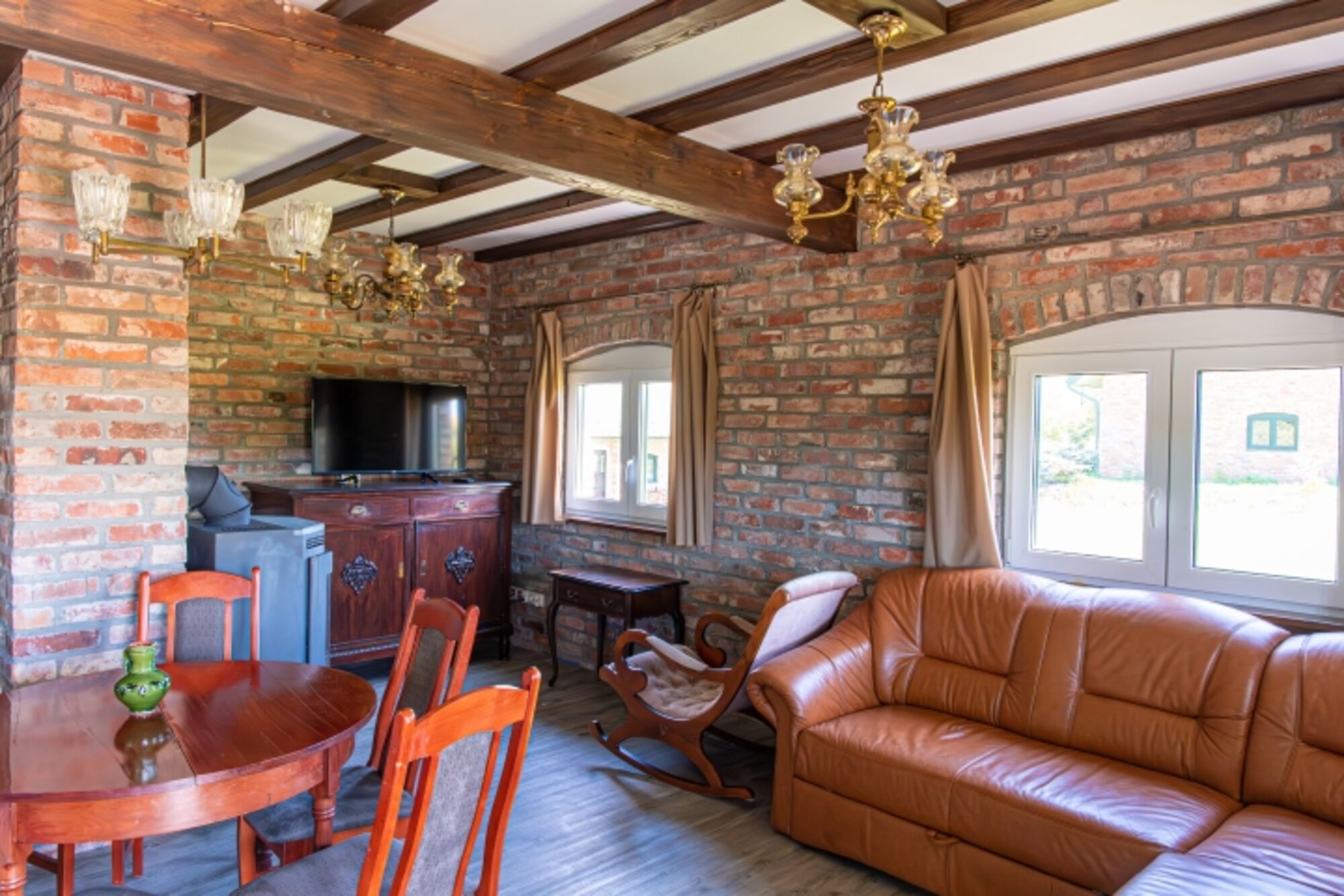 Das Ferienhaus ist aus alten Ziegelsteinen gebaut, ist mitten im Grünen in ruhige Lage gelegen und befinden sich in Sackshöhe (polnisch: Zakrzewo), ca. 5 Fahrminuten zum breiten Sandstrand (Kopan) und ca 10 Minuten Fahrstrecke bis zur Stadt Rügenwalde (Darlowo) mit Einkaufsmöglichkeiten, Cafes uvm.