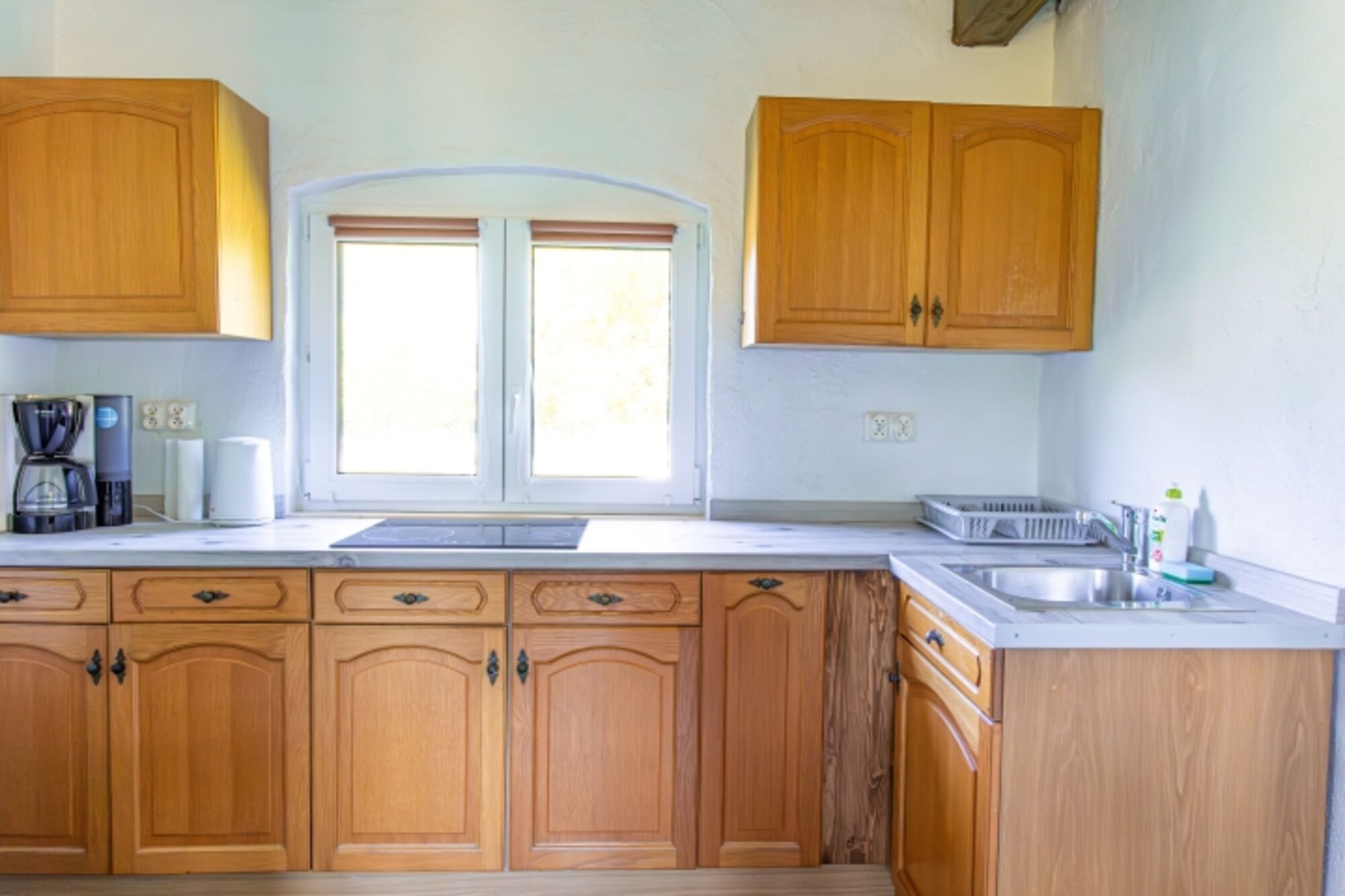 4-Platten Herd, Cerankochfeld, Kühlschrank mit Gefrierfach, Korkenzieher / Flaschenöffner, Gewürze (Salz, Pfeffer, Zucker), Geschirrhandtücher, Mülltüten