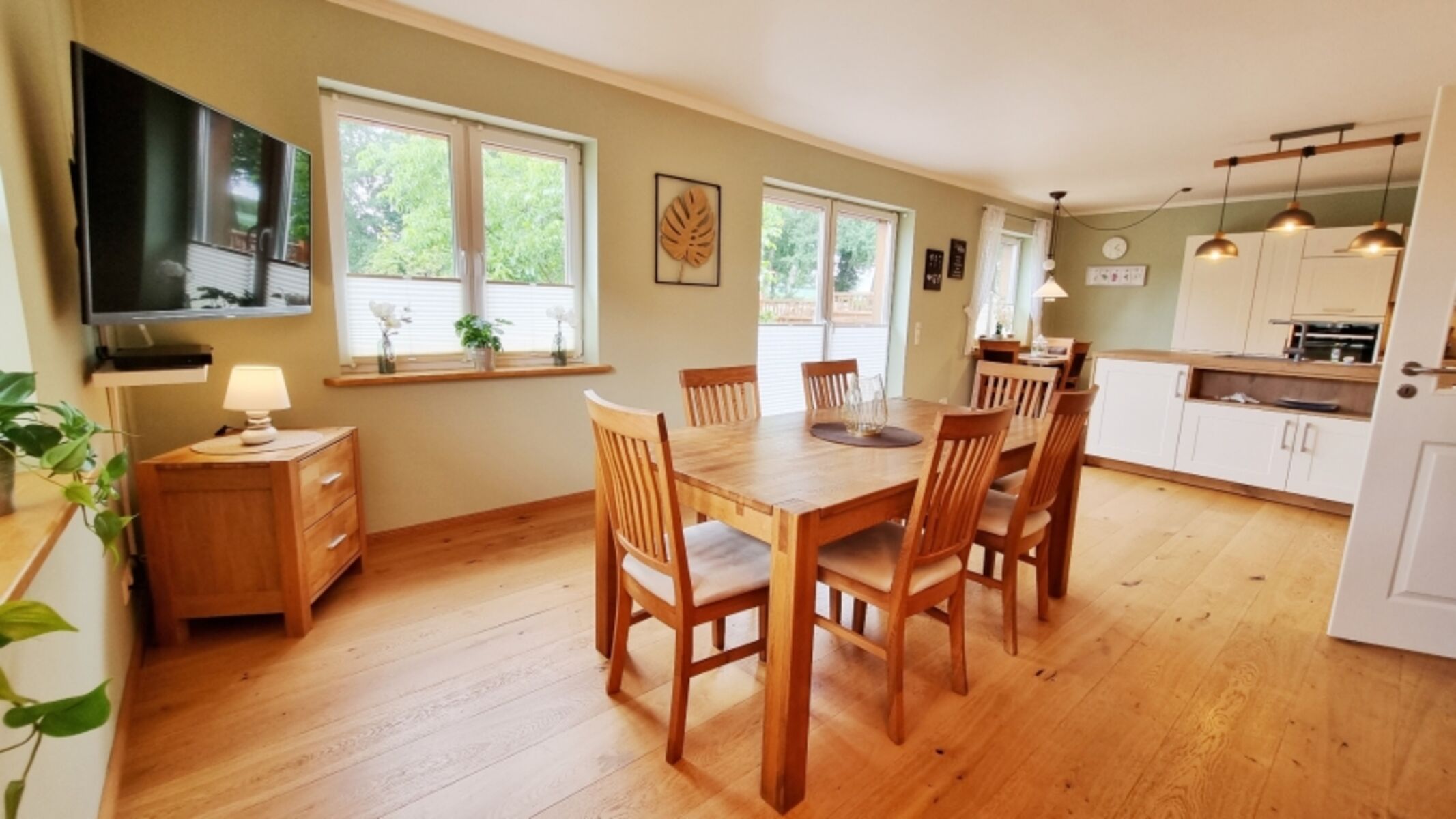 Essbereich: Fernseher / Esstisch / 7 Stühle