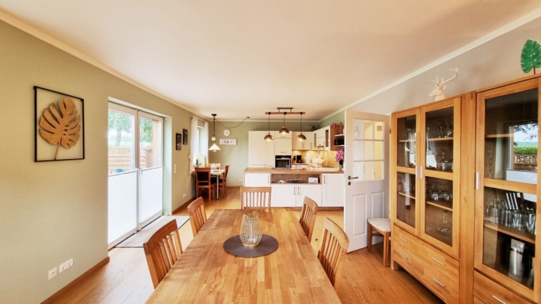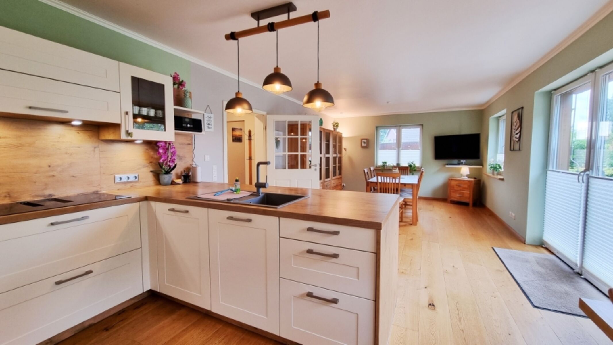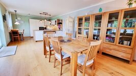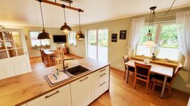 Bis zu 6 Personen finden hier Platz für Ihren erholsamen Traumurlaub. Das Domizil verfügt über 3 Schlafzimmer, davon eins im Erdgeschoss, eine luxuriöse, offene Landhausküche mit großem Essbereich, sowie einen Wohnbereich mit Blick ins Grüne, ein ebenerdiges Vollbad und ein Gäste-WC. Das Erdgeschoss mit Doppelbettzimmer, Küche und Essbereich sowie dem Vollbad sind behindertengerecht gestaltet und auch mit einem Rollstuhl gut erreichbar. Zudem ist ein eigener, eingezäunter Garten nebst großer Terrasse in Südlage vorhanden, um in vollen Zügen die frische Luft zu genießen. Zwei Hunde sind herzlich Willkommen.