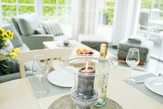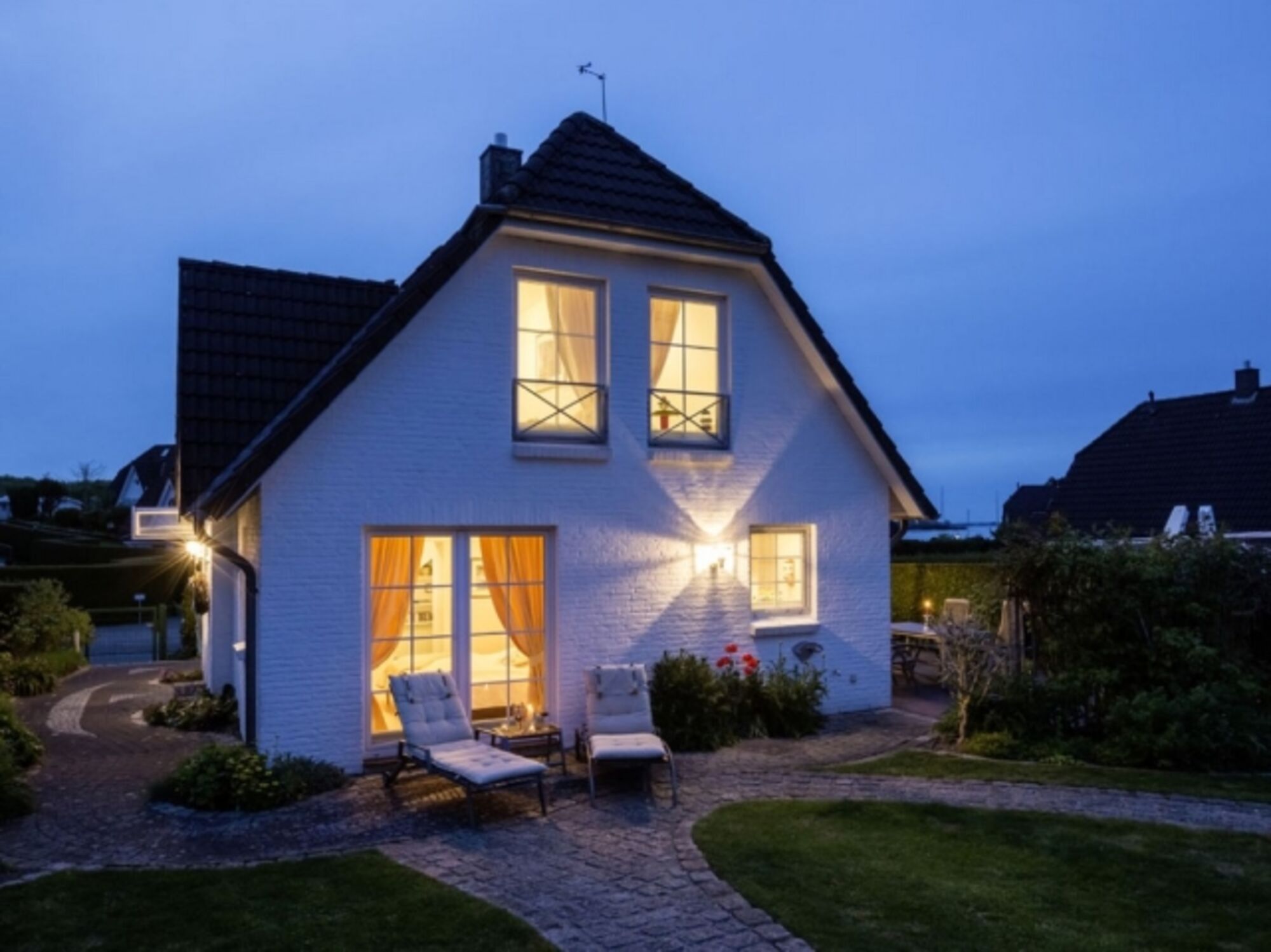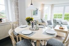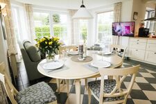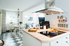 Eine erstklassig ausgestattete offene Küche mit Mielegeräten und Weinkühlschrank, Kaffeevollautomat und Thermomix TM 31 wartet auf Sie. Drei geschmackvolle Schlafzimmer, zwei moderne Bäder – eines mit Whirlpoolwanne – ein gemütliches Wohn- und Esszimmer mit Kaminofen und Flachbild TV lädt zum Wohlfühlurlaub ein. Das gepflegte Grundstück mit der großen Terrasse nach Süd-West und einer weiteren Terrasse nach Osten, sowie exklusiven Terrassenmöbeln und einem Webergrill, ist hundesicher eingezäunt, und Sie können hier ungestört entspannen.